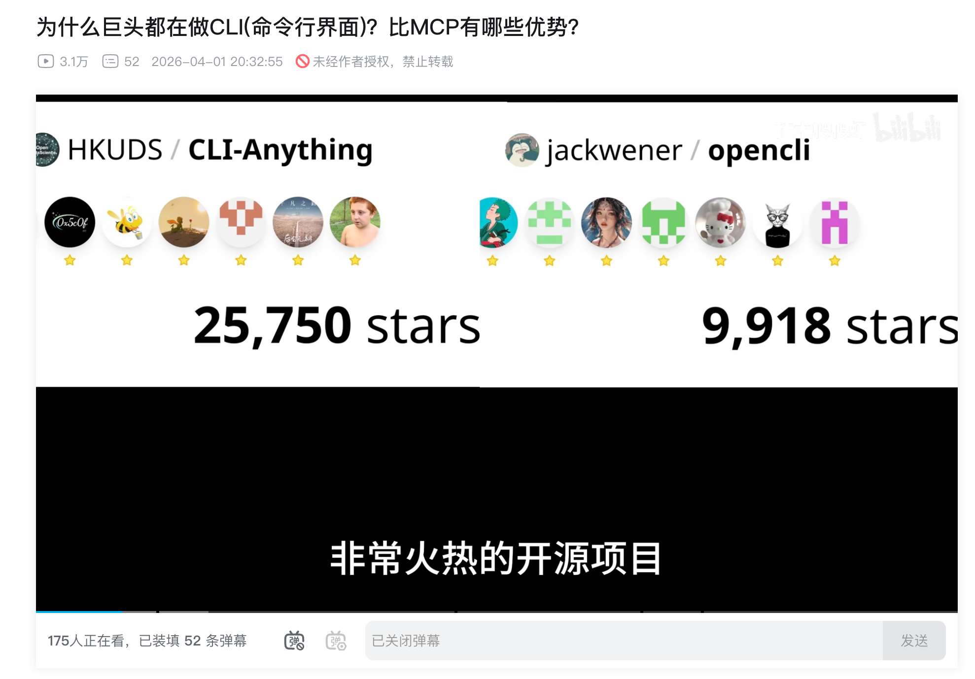 OpenCLI、CLI-Anything 这两个项目前两天还一起作为案例出现在博主「技术爬爬虾」的一期讲 CLI 的节目中(图 3)
