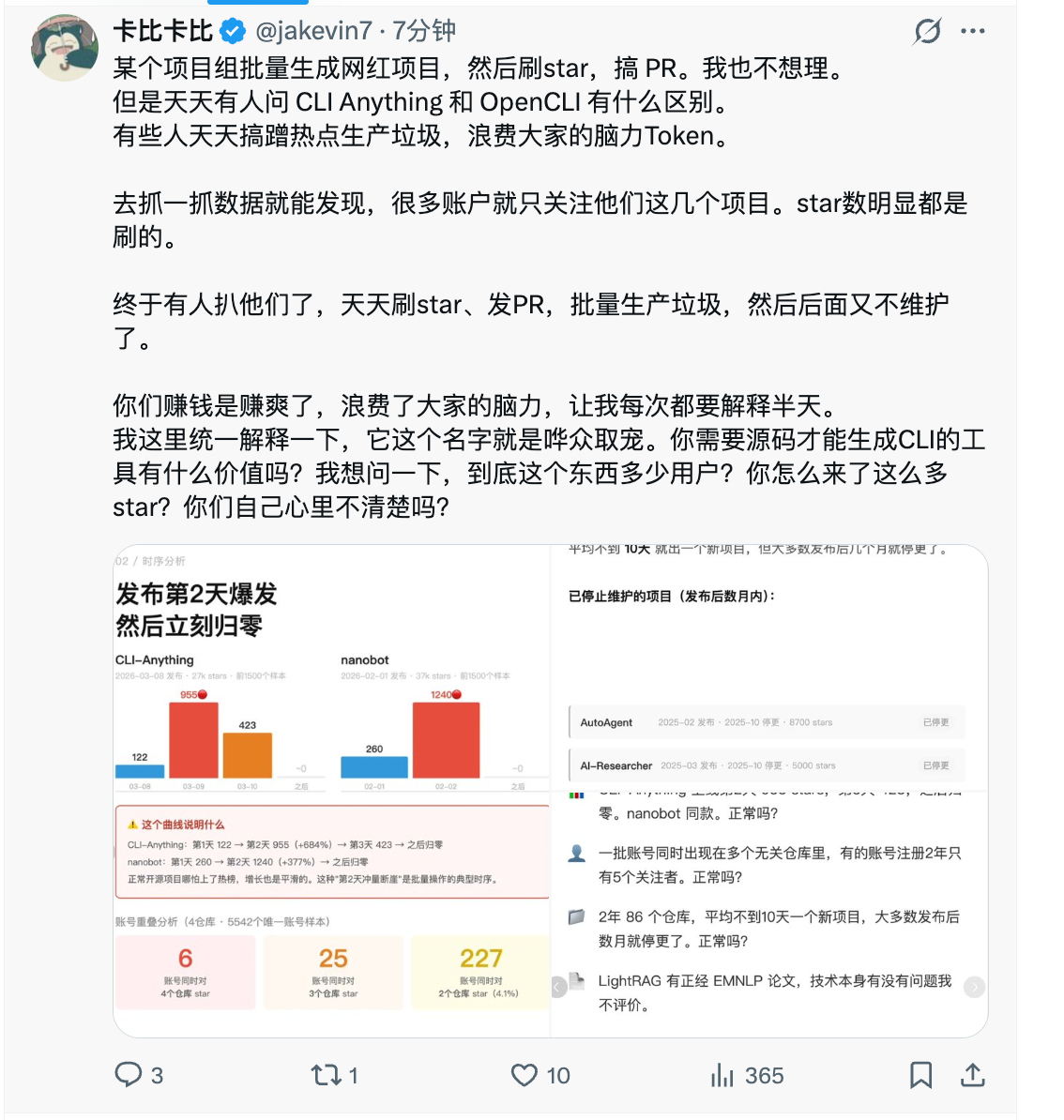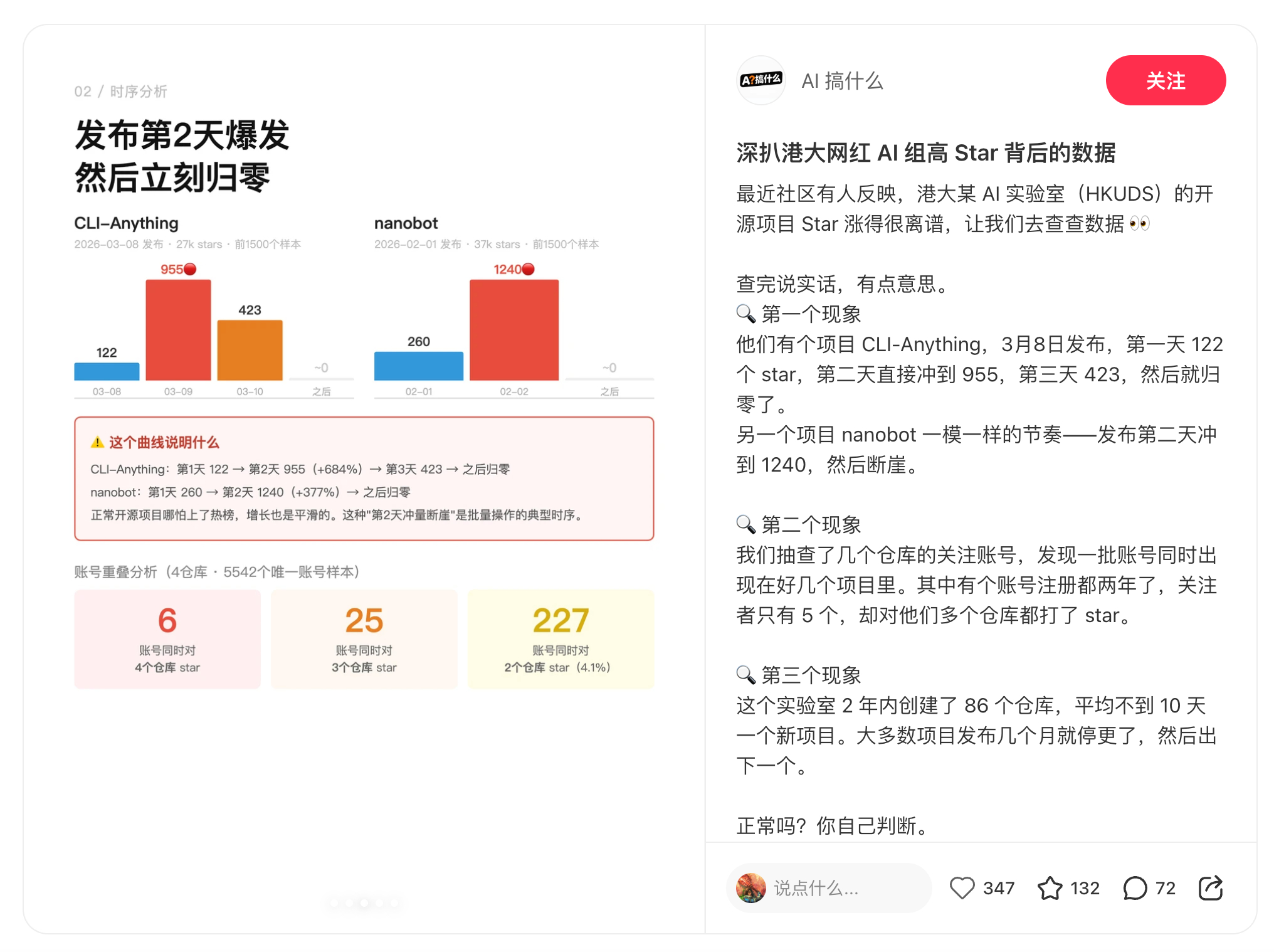 香港大学数据科学实验室(HKUDS)被曝刷 github star,包括两个项目:CLI-Anything、nanobot(图 1)