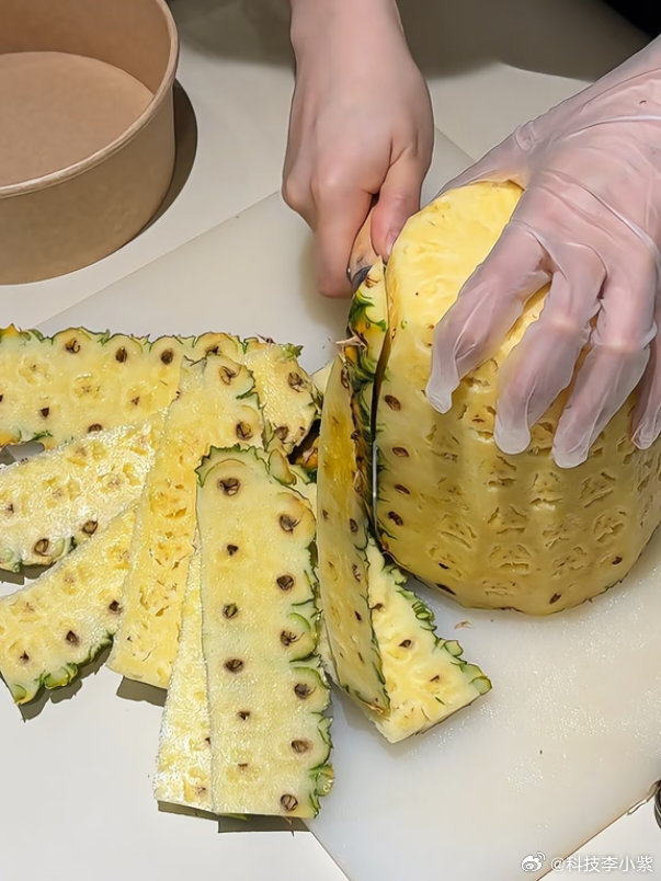 凤梨这样削皮有点奢侈了吧前几天刚学了怎么切凤梨好奇为什么菠萝要盐水泡,凤梨却不要