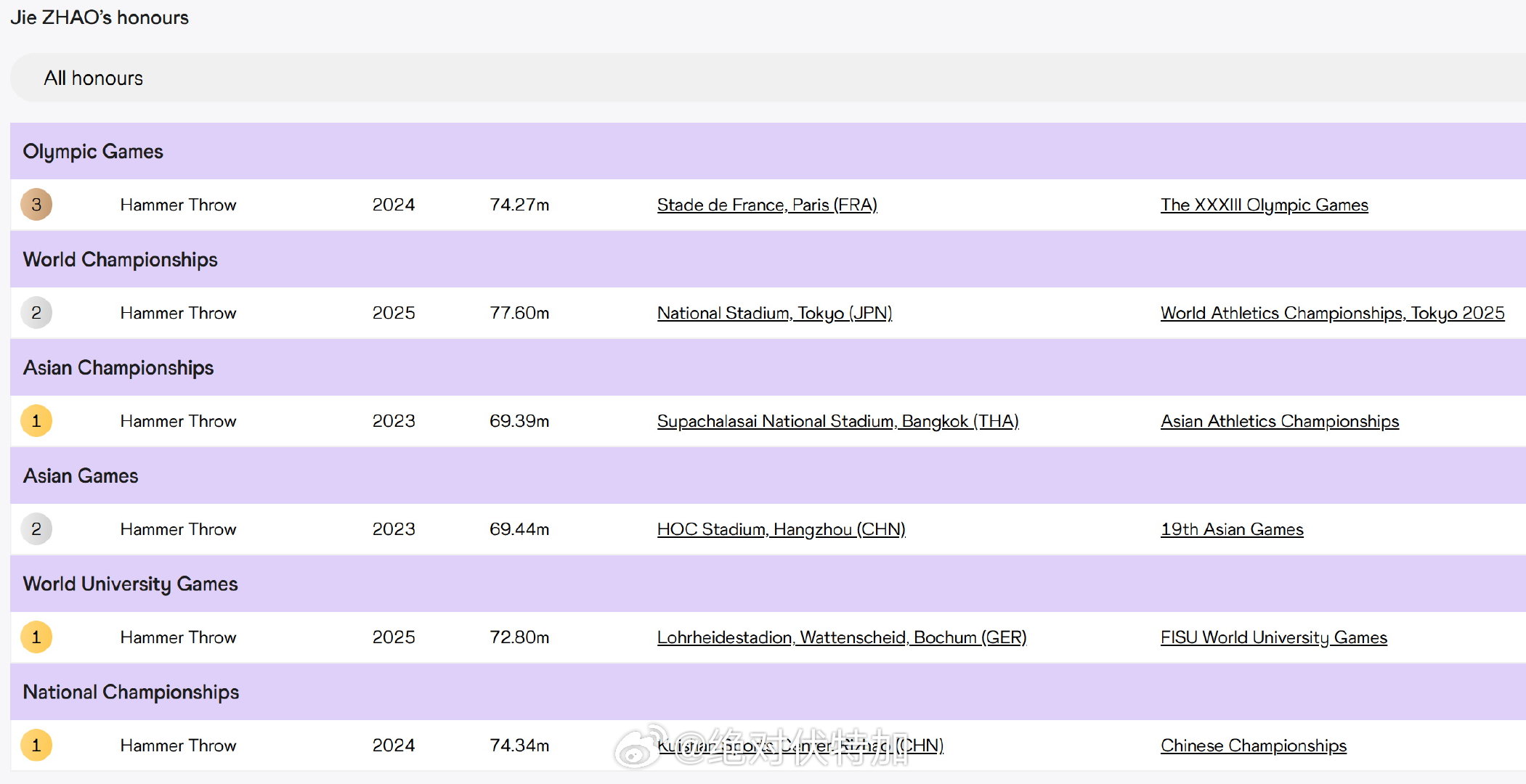 赵洁,巴黎奥运会女子链球铜牌、东京田径世锦赛银牌获得者,刚刚在成都全国田径投掷项群赛(第二站)中以78.22米打破亚洲纪录。原纪录为王峥在2014年创造的77.68米。赵洁2002年10月出生。
