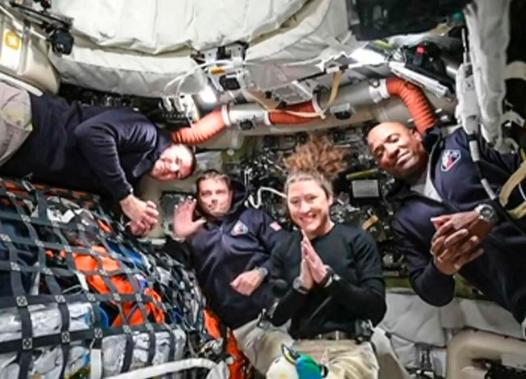 美国航空航天局“阿耳忒弥斯2号”载人绕月飞行任务的猎户座太空船,周四(4月2日)在太空完成关键的推进器点火程序,把四名太空人送入飞向月球的轨道。 称为地月转移轨道点火的步骤,目的是让太空船进入正确的轨道,执行10天的绕月飞行任务。搭载太空船的火箭周三从美国发射升空并进入稳定轨道。如果一切顺利,太空船将在6日飞抵月球背面。 航天局周五发布视频,显示四名太空人在太空船内的情况,他们是加拿大人汉森(从左至右),以及三名美国人:任务指挥官怀斯曼、任务专家科赫和飞行员格洛弗。(法新社)