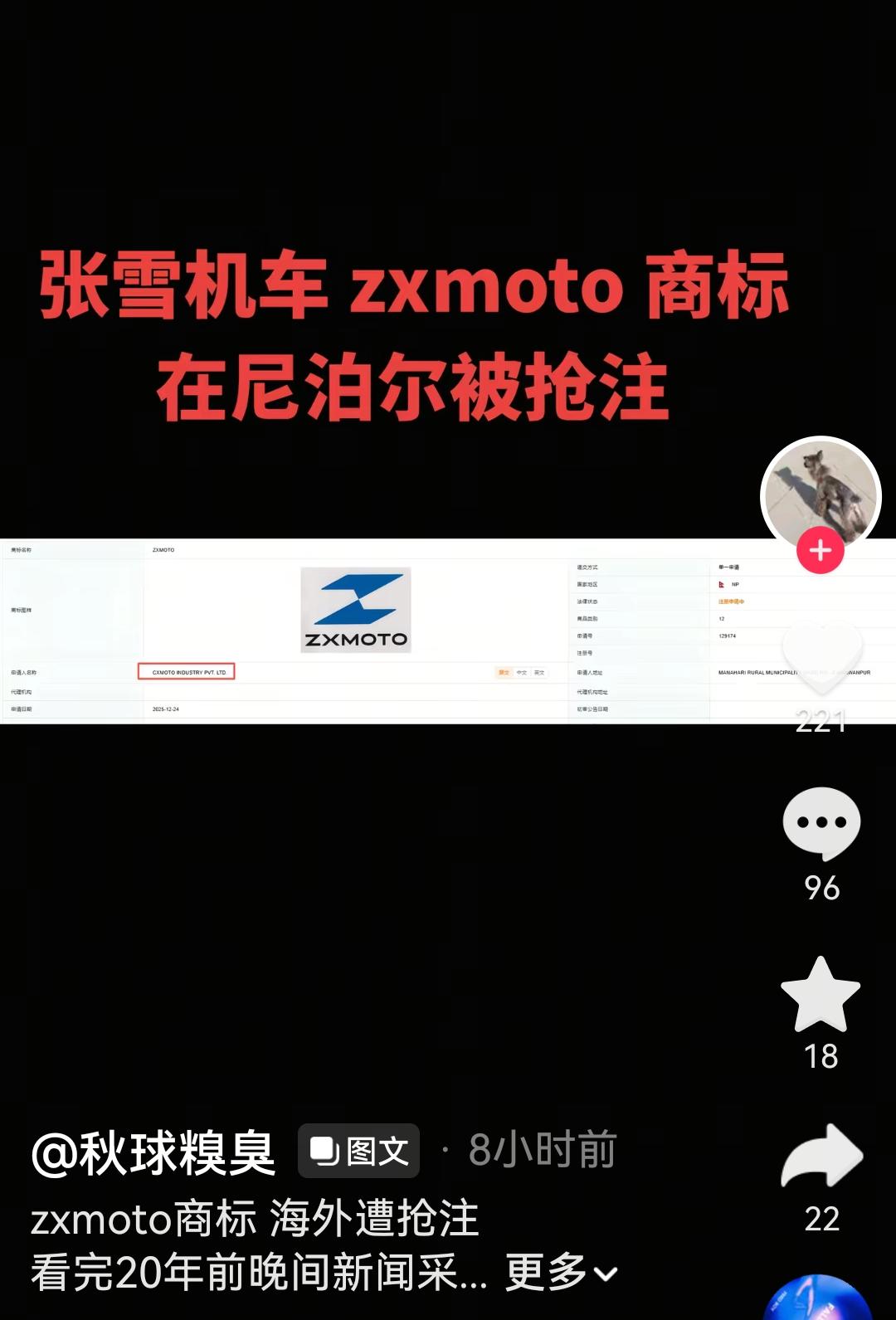 张雪机车在国际赛场一战成名而爆火出圈,现在很多机构都看好张雪机车的海外市场,于是就有一些人动起了歪心思,第一时间在海外抢注张雪机车的商标。 我看到有博主发视频,有人在尼泊尔抢注张雪机车的商标,我觉得这个事情估计是中国人干的,这种行为也是中国人能干出来的事情。 不过这也提醒了张雪机车公司,现在应该马上布局全球的知识产权和商标,为未来全球化开始做准备,张雪机车未来的主要市场一定是在海外,因为中国是有禁摩限摩政策,天花板摆在这里。