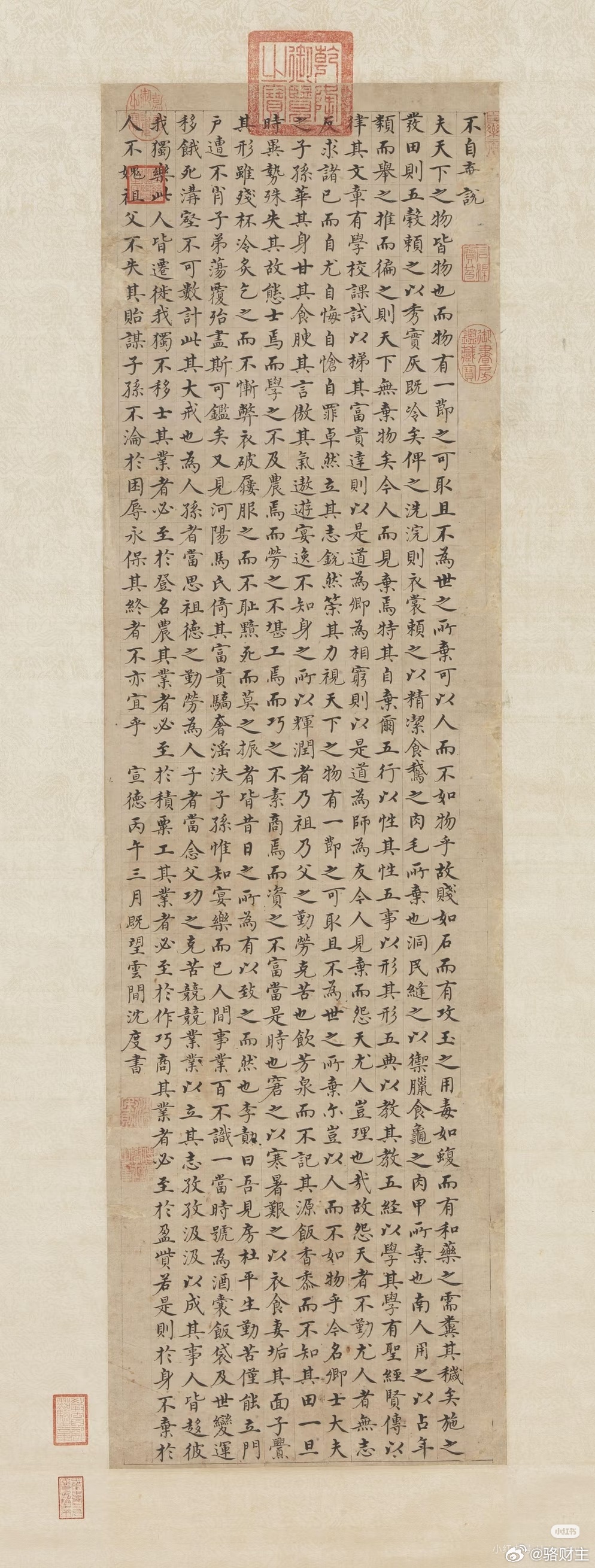 过去了整整六百年今年2026年也是丙午,沈度在整整六百年前的宣德丙午1426年写下此篇。三月虽然不重合,但同样是赏花时节。宣德是明朝第五位皇帝明宣宗朱瞻基的年号,使用于1426年至1435年,共历十年。这位皇帝因为喜爱斗蛐蛐被称为“促织天子”。