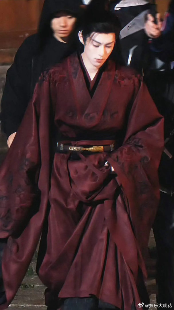 王鹤棣今天将门红衣路透看起来很不错诶?