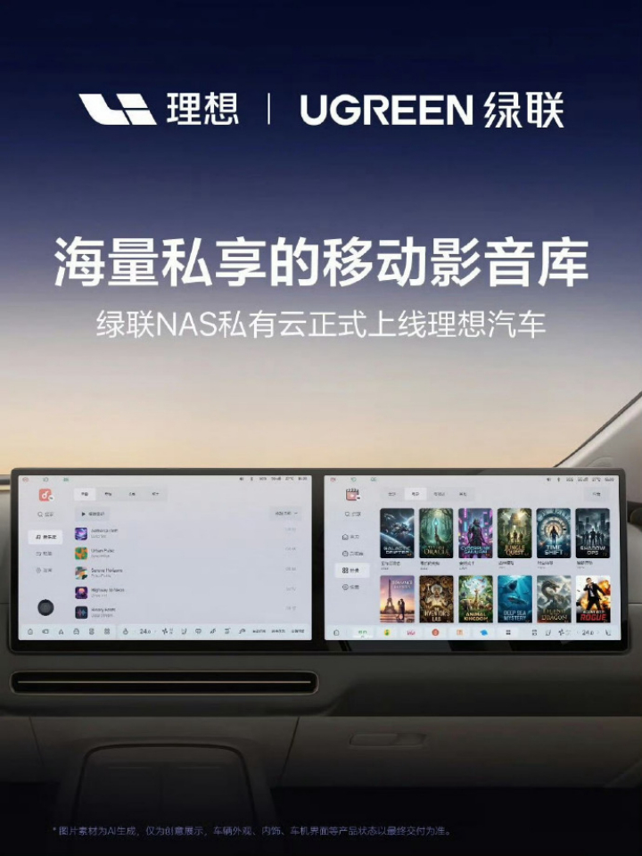 如果是多人出行的话也能完美适配,主驾正常用车载音响听歌,副驾屏和后排屏各自连上蓝牙耳机就可以看自己想看听自己想听的了,每个人的需求都能满足。绿 联 科技和 理 想 汽车的这次合作,真的有种把“家”的影音库,装进移动的小家的感觉!绿联NAS私有云理想汽车