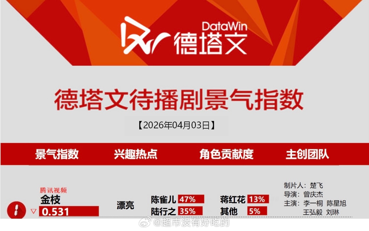 4.3德塔文待播剧景气指数榜李一桐《金枝》登顶第一陈雀儿角色占比47%确实是很漂亮,恭喜一桐李一桐李一桐