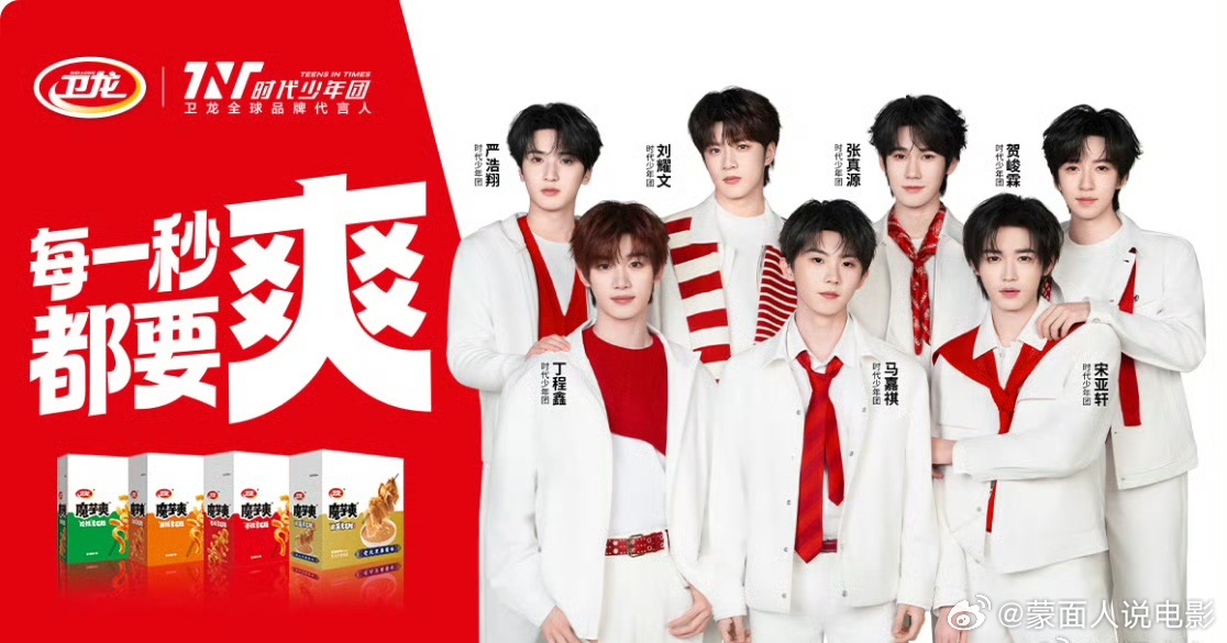 谁在青春期没偷偷馋过一包魔芋爽?时代少年团自带的青春活力与卫龙的“解馋”属性高度契合。最新TVC物料里少年们元气满满的状态,完全就是“吃着卫龙长大”的真实写照,这波代言被粉丝戏称“像是他们自己谈下来的”。