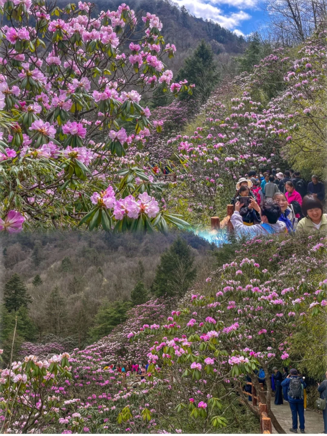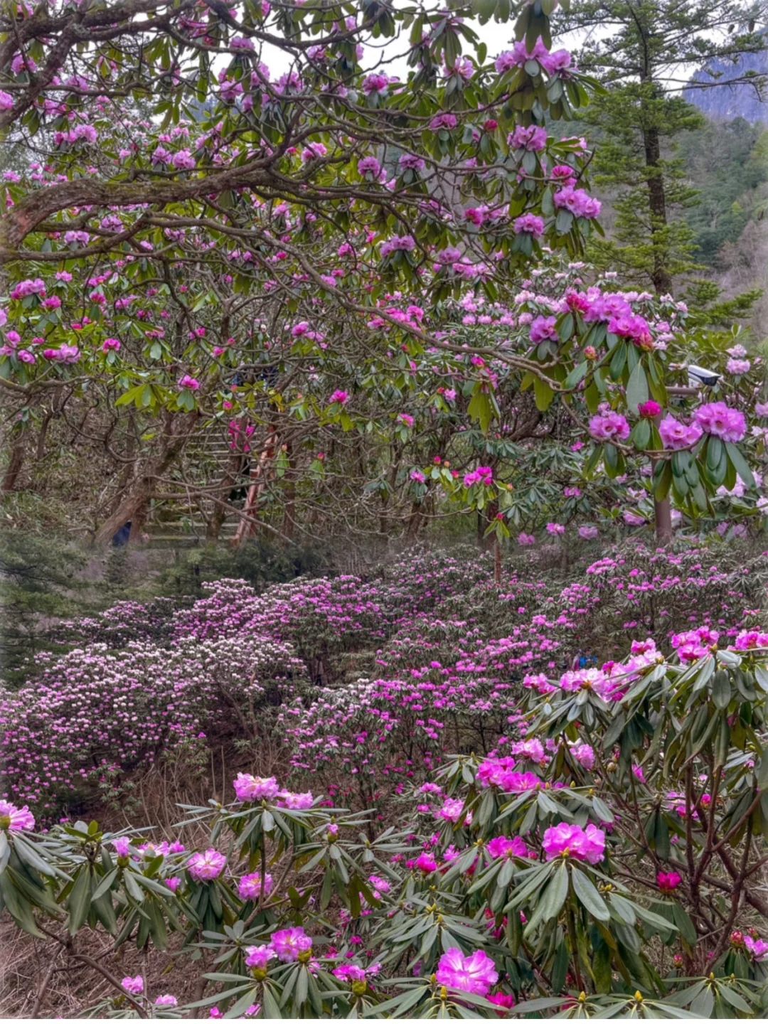 🌟杜鹃花廊:这里有修建好的5公里观花栈道,沿着栈道走,你会看到成片的高山杜鹃开在悬崖边、冷杉下,拍照超级出片!