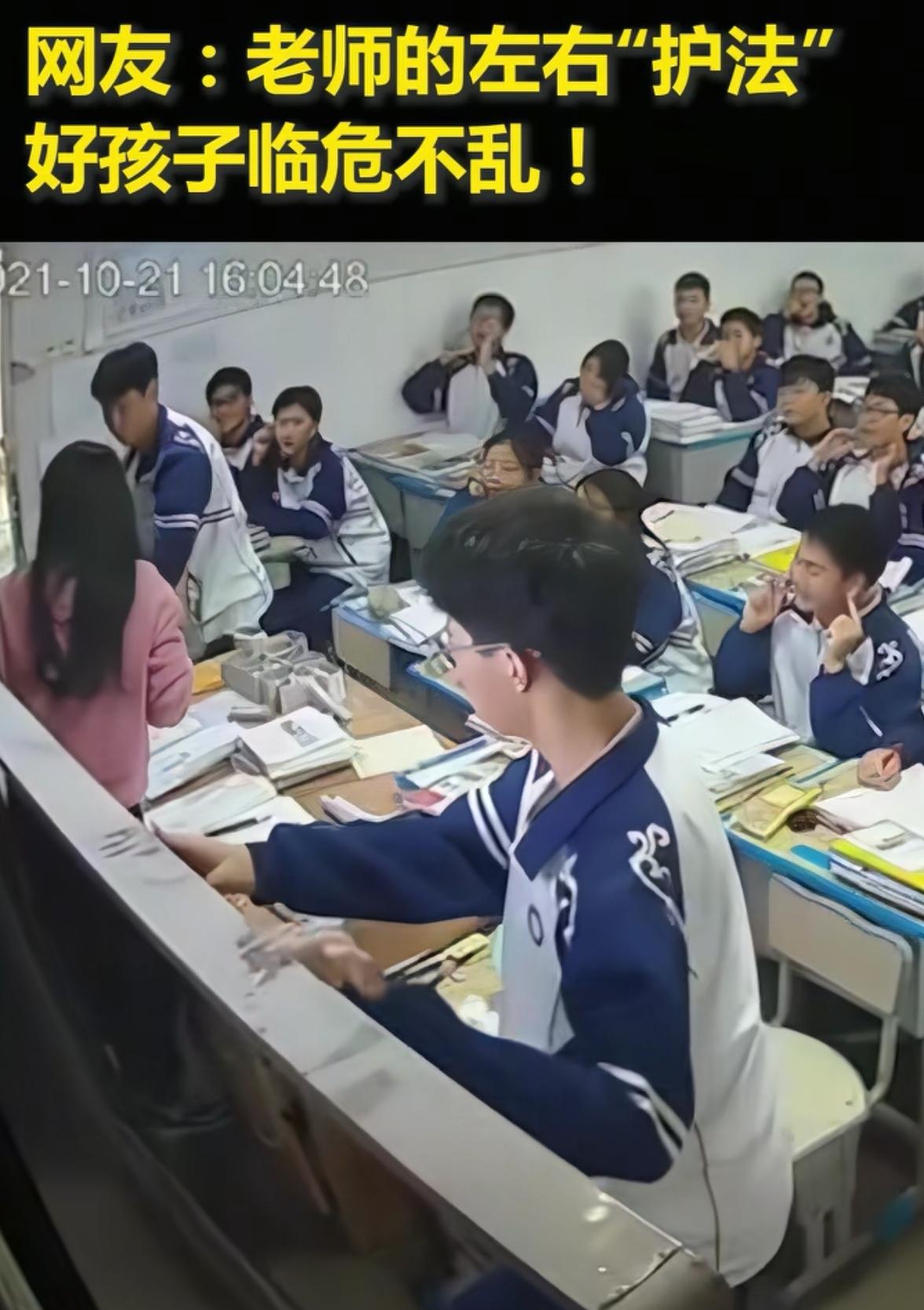 “没想到上人民日报了!” 高中教室,黑板突然掉落, 眼看着要砸向老师,不料下一秒 第一排两名男生化身“左右护法” 伸手稳稳的接住了黑板,网友笑称: 这就是第一排的觉悟! 视频里,教室里安安静静上课,老师站在讲台前,一切都很平常,突然,黑板“哐当”一声松动脱落,直直朝着老师砸过去,情况特别紧急。 后排同学还吓得捂头呢,他俩动作又快又麻溜,一点没犹豫,就这么护住了老师。完事儿还小心翼翼把黑板放下,确认安全才回座位。 这短短几秒,展现的可是少年的勇敢担当。大家都觉得,成绩哪能是评判孩子的唯一标准?这种本能的勇敢、无需言语的默契,才是青春该有的样子,值得狠狠点赞! 你身边有没有这样勇敢的少年事儿,快来说说呗