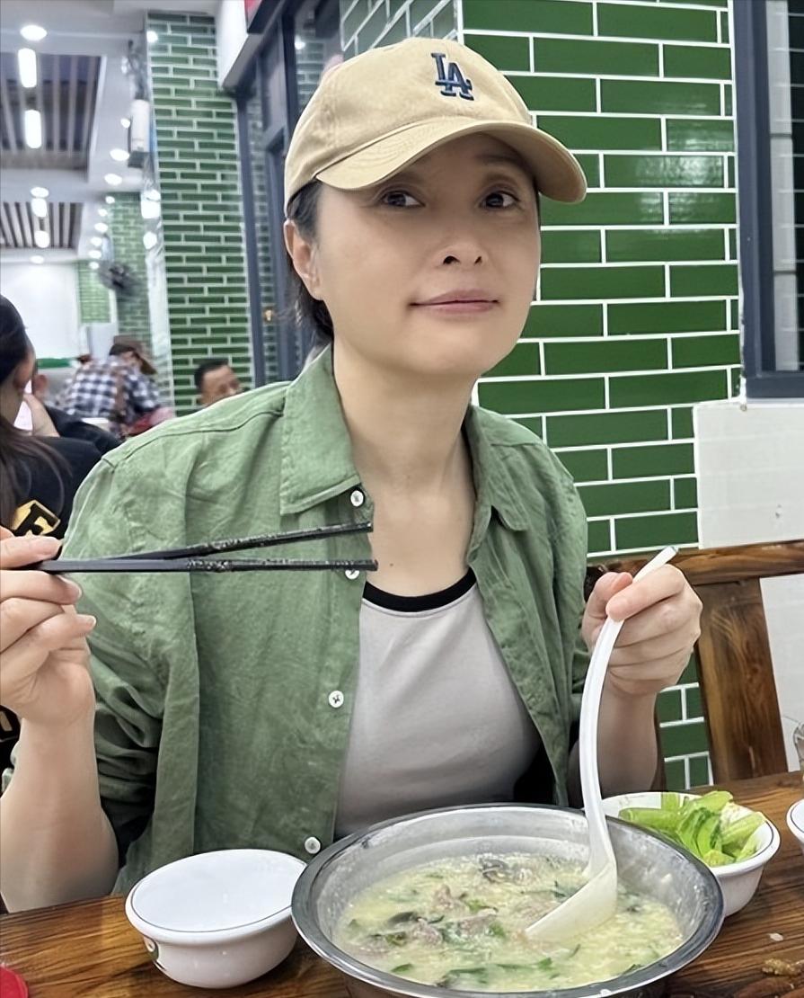 53岁吴越不结婚,不生娃,偶尔演戏,日常打扮随性自然,和朋友们四处品尝美食,享乐人生! 特别喜欢吴越生活中的样子,不被年龄定义,不被世俗裹挟,既有女演员的专业,又有普通人的烟火气。近日,在佛山小饭馆用不锈钢小铁盆喝粥,泡油条,太接地气,碰到网友打招呼,笑得明媚又从容,相当亲切又低调! 生图中的吴越,身穿淡绿色衬衣内搭白色小背心,清新文艺,头戴土黄色棒球帽,虽说素颜出镜的她,并没有刻意去掩盖时光的痕迹,但却一点不显老,还全身都散发出一种温婉可人,松弛通透的自然美!轻松活成了无数50+女人都向往的模样!