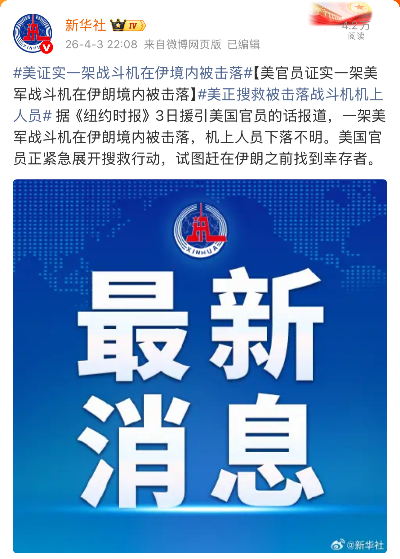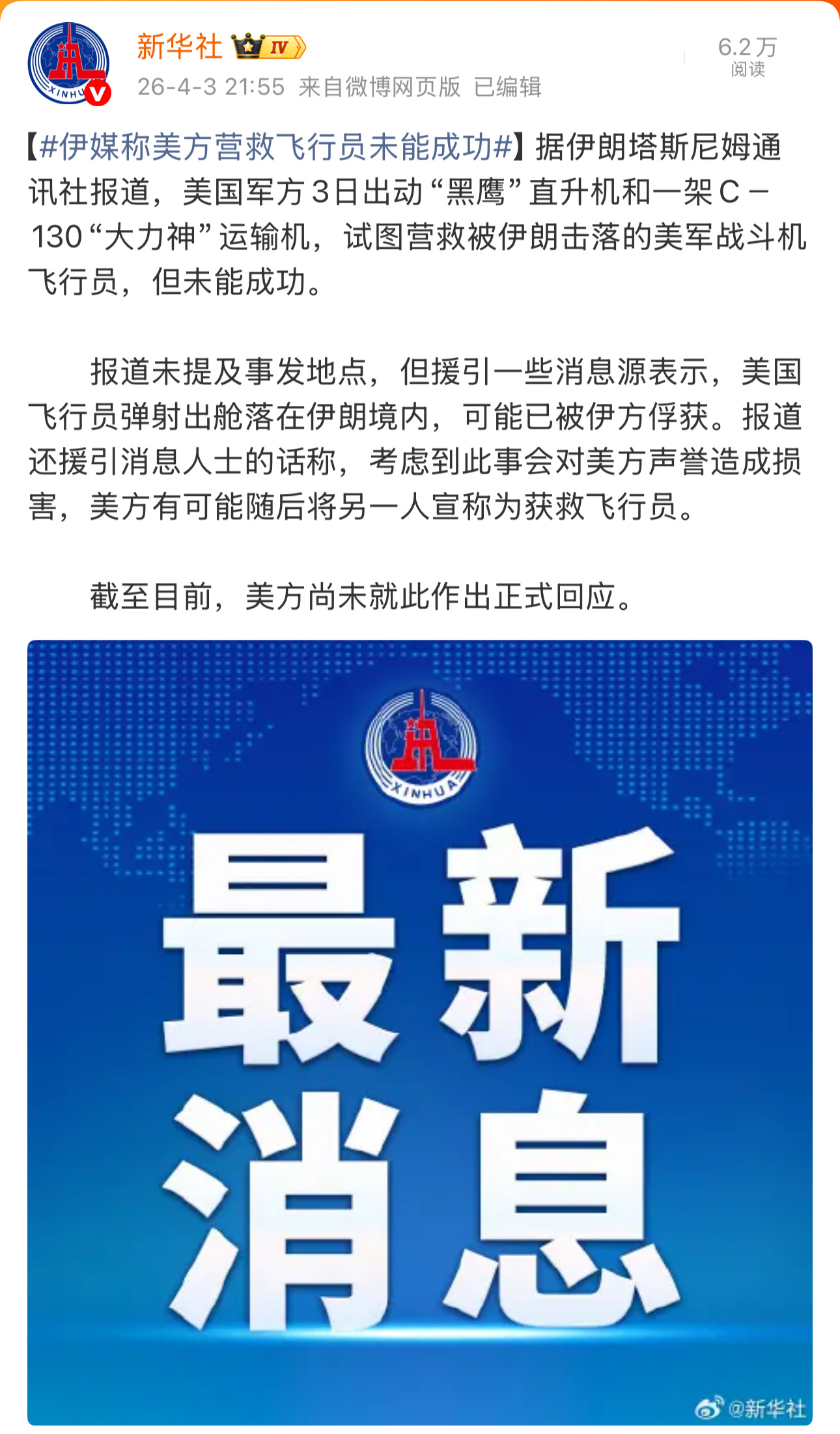 伊媒称美军试图救出遭击落战机飞行员热点观点 伊媒称美军试图救出遭击落战机飞行员