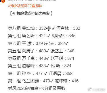 《乘风2026》初舞台直播,出场顺序按投票排名,出场人自由选择PK,最终的投票成绩,今晚初舞台你最满意的选手是谁???
