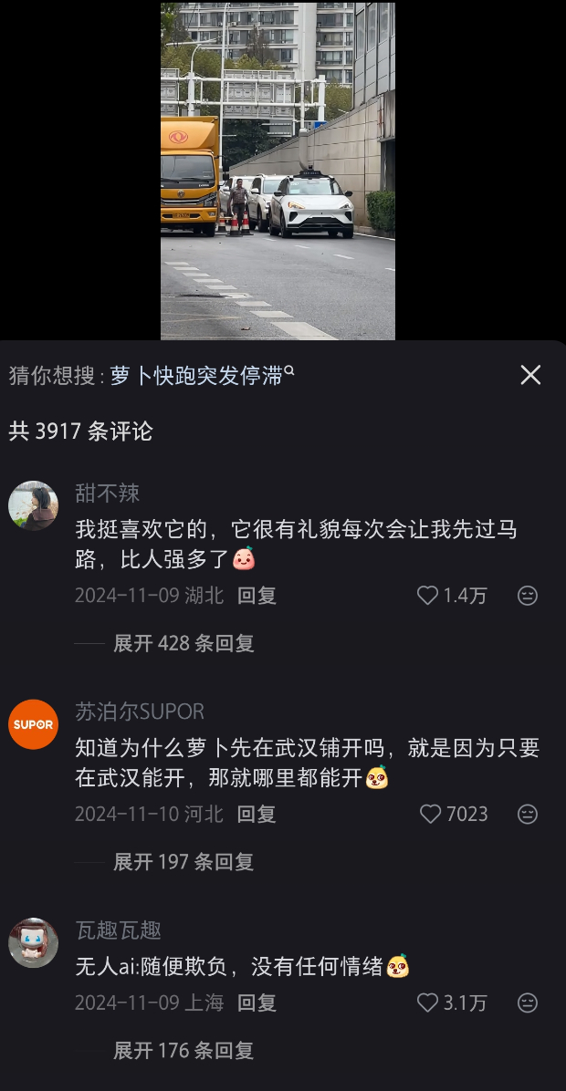 之前3月底萝卜快跑的车因为点问题卡了一下,虽然很快就恢复了,但是还有不少人喷。那