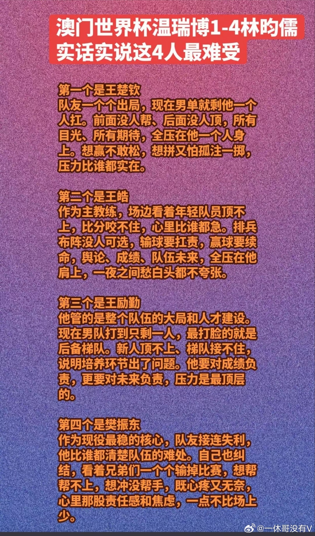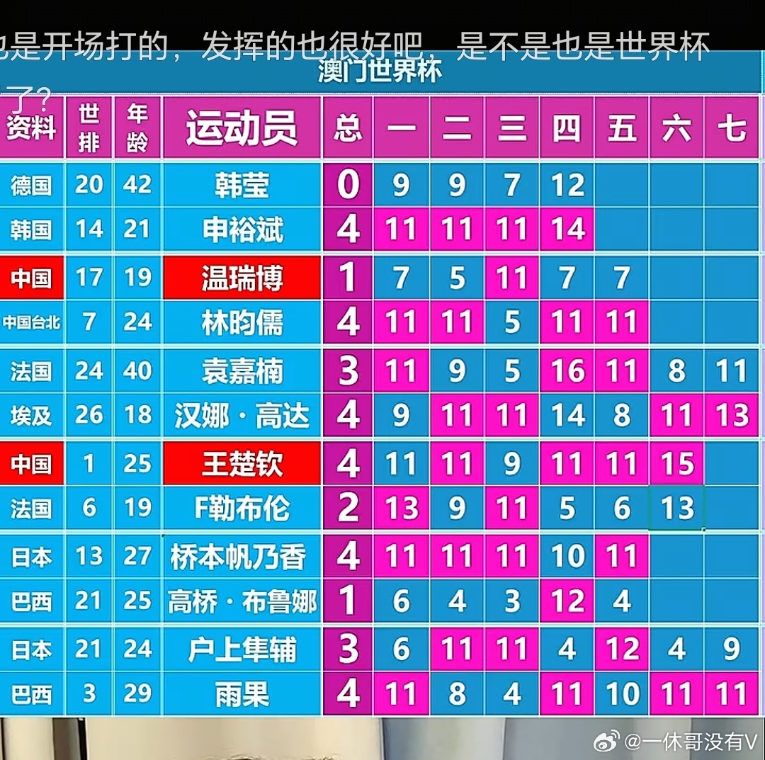 澳门世界杯进入八强赛了,随着重庆冠军赛冒出来的新秀温瑞博,输了,现在男队八强就剩