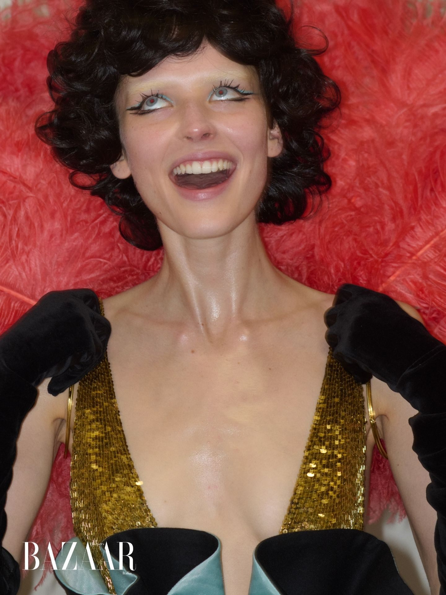 模特Libby Taverner出镜意大利版《Harper’s BAZAAR》2026年4月刊封面,“Ta Taa Taa”,演绎将直觉和想象力转化为具体事物的高级定制时装。时装造梦,可以让人们本来看不到的东西变得可见|摄影:Johnny Dufort/造型:Sissy Vian
