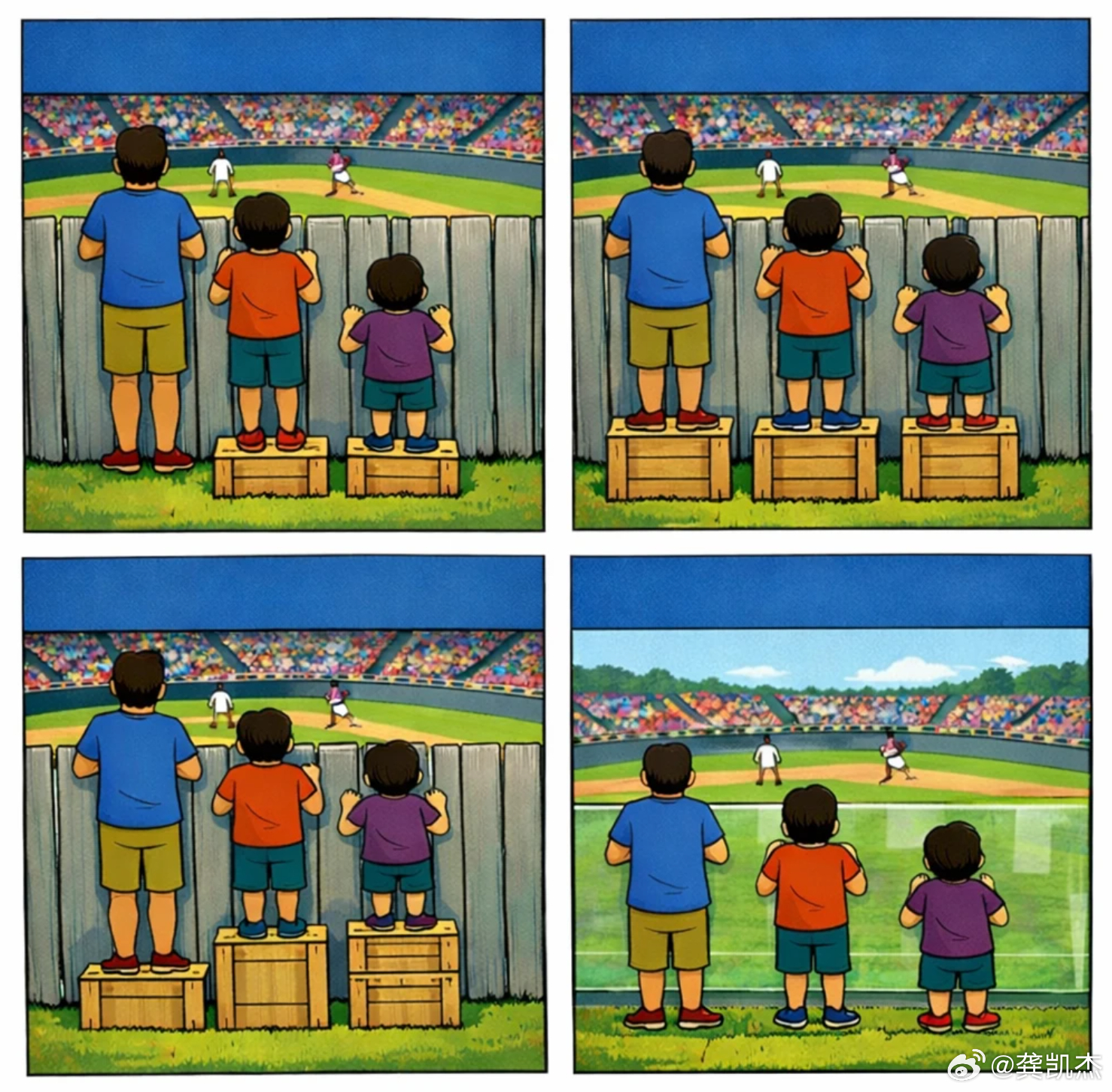 请问图中哪个是平等、哪个是公平、哪个是公正?