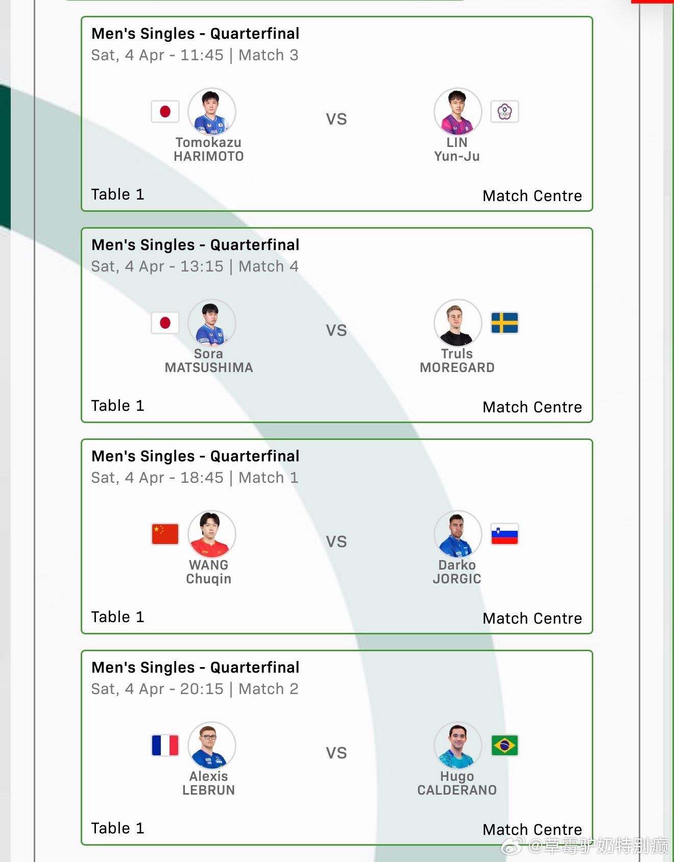 2026澳门世界杯4.4男子8-411:45张本智和🇯🇵VS林昀儒(中国台北)13:15松岛辉空🇯🇵VS莫雷加德🇸🇪18:45王楚钦🇨🇳VS达科🇸🇮20:15A·勒布伦🇫🇷VS雨果🇧🇷
