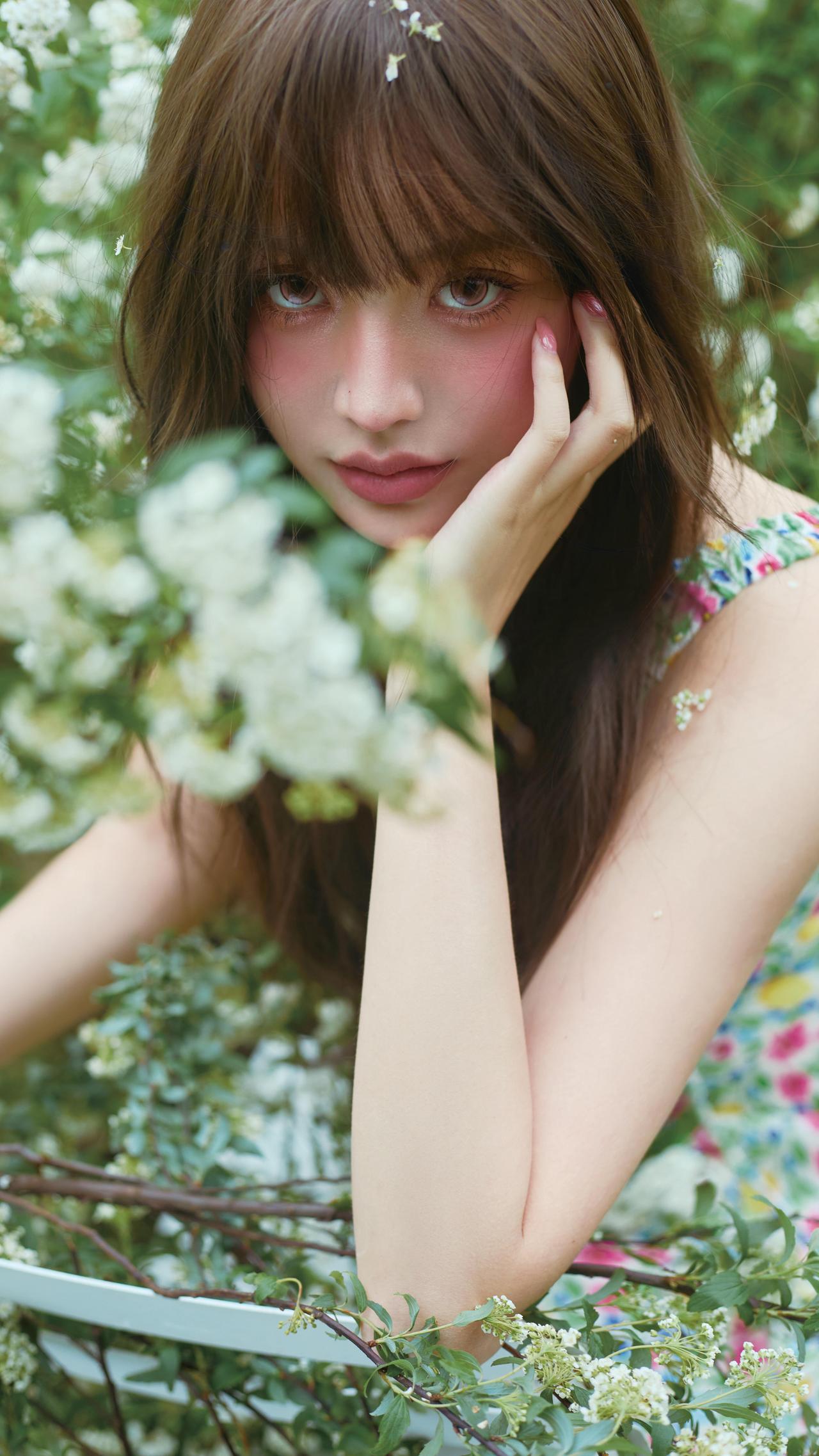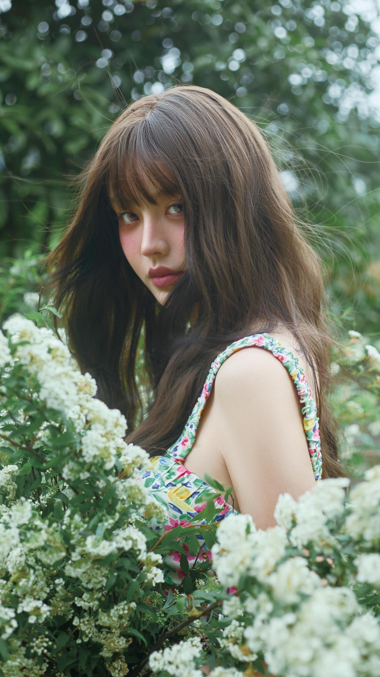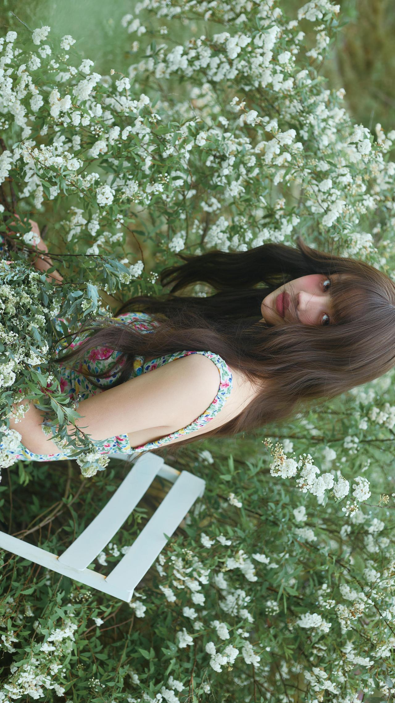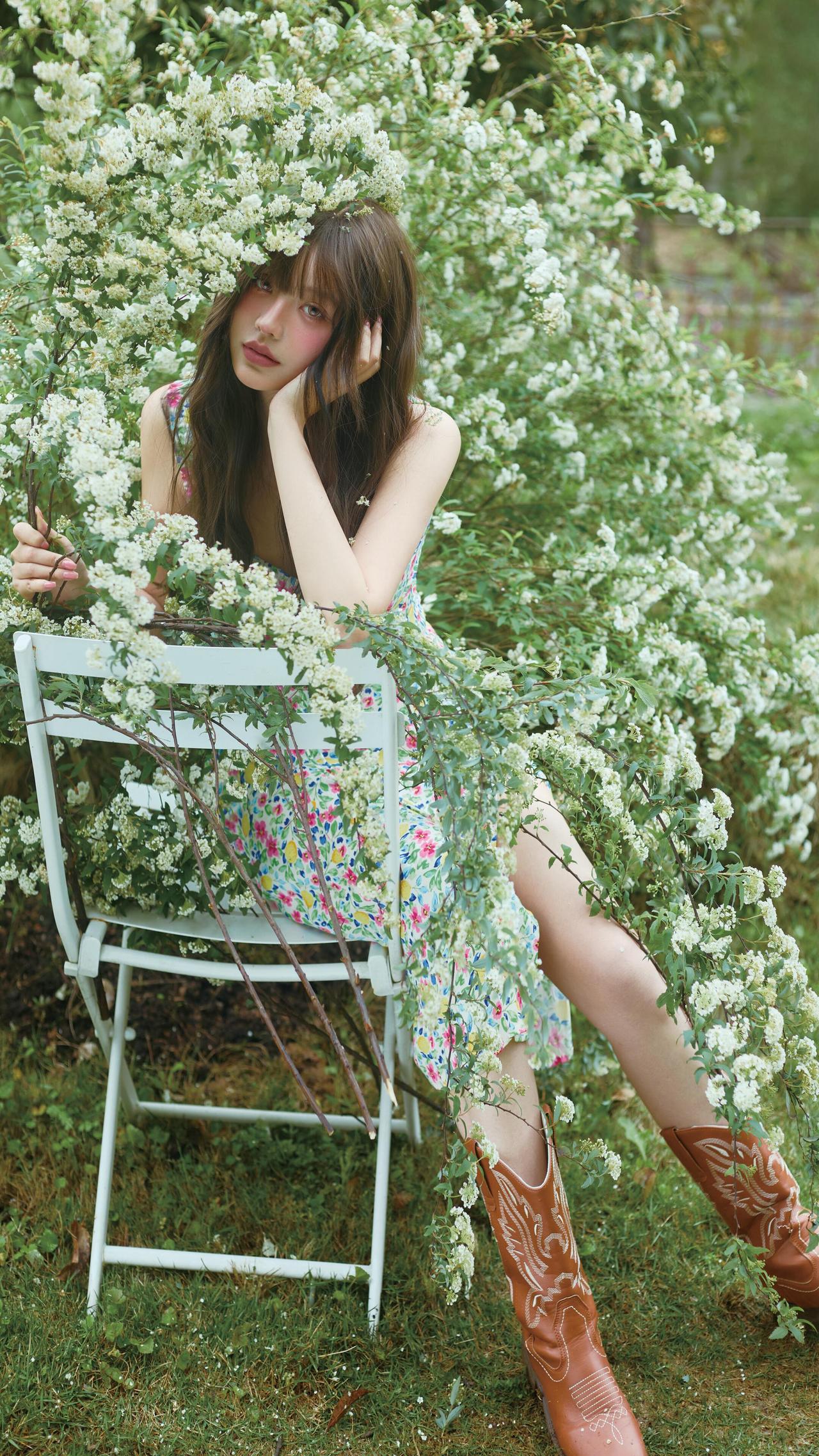 早春人像,让人与自然深度融合,不用刻意的摆拍,仿佛模特本就是春日花境的一部分。 拍摄者深谙环境人像的核心逻辑,没有让人物脱离场景,而是让花簇成为画面的有机组成部分,无论是前景的虚化花影,还是环绕人物的花枝,都在为人物服务,同时强化了“早春芳香”的主题。 色彩搭配堪称教科书级别,白色花簇的纯净、碎花裙的缤纷、牛仔靴的棕红,在绿色背景的衬托下,既丰富又和谐,没有丝毫杂乱感。模特的妆容造型也与主题高度契合,空气刘海、自然卷发、氛围感腮红,完美适配春日花境,没有过度修饰的痕迹,呈现出原生的美感。 构图上,拍摄者灵活运用了多种手法,特写的聚焦、中景的叙事、俯拍的灵动,让整组作品富有变化。尤其是模特倚靠白椅的画面,线条简洁的椅子与繁复的花簇形成对比,既稳定了画面结构,又突出了人物。光影上,利用柔和的自然光塑造出通透的皮肤质感,同时保留了环境的层次,让画面有呼吸感。