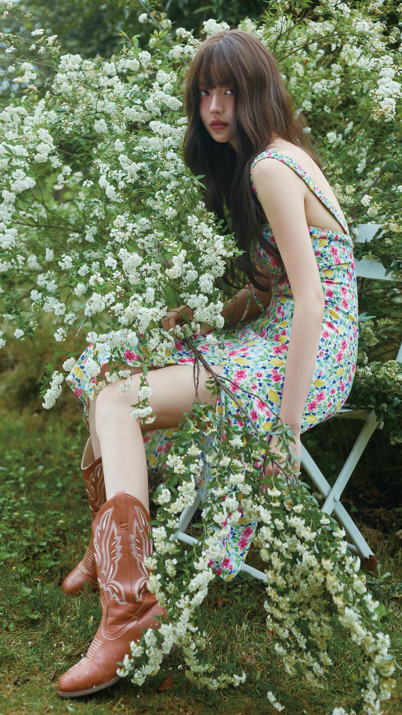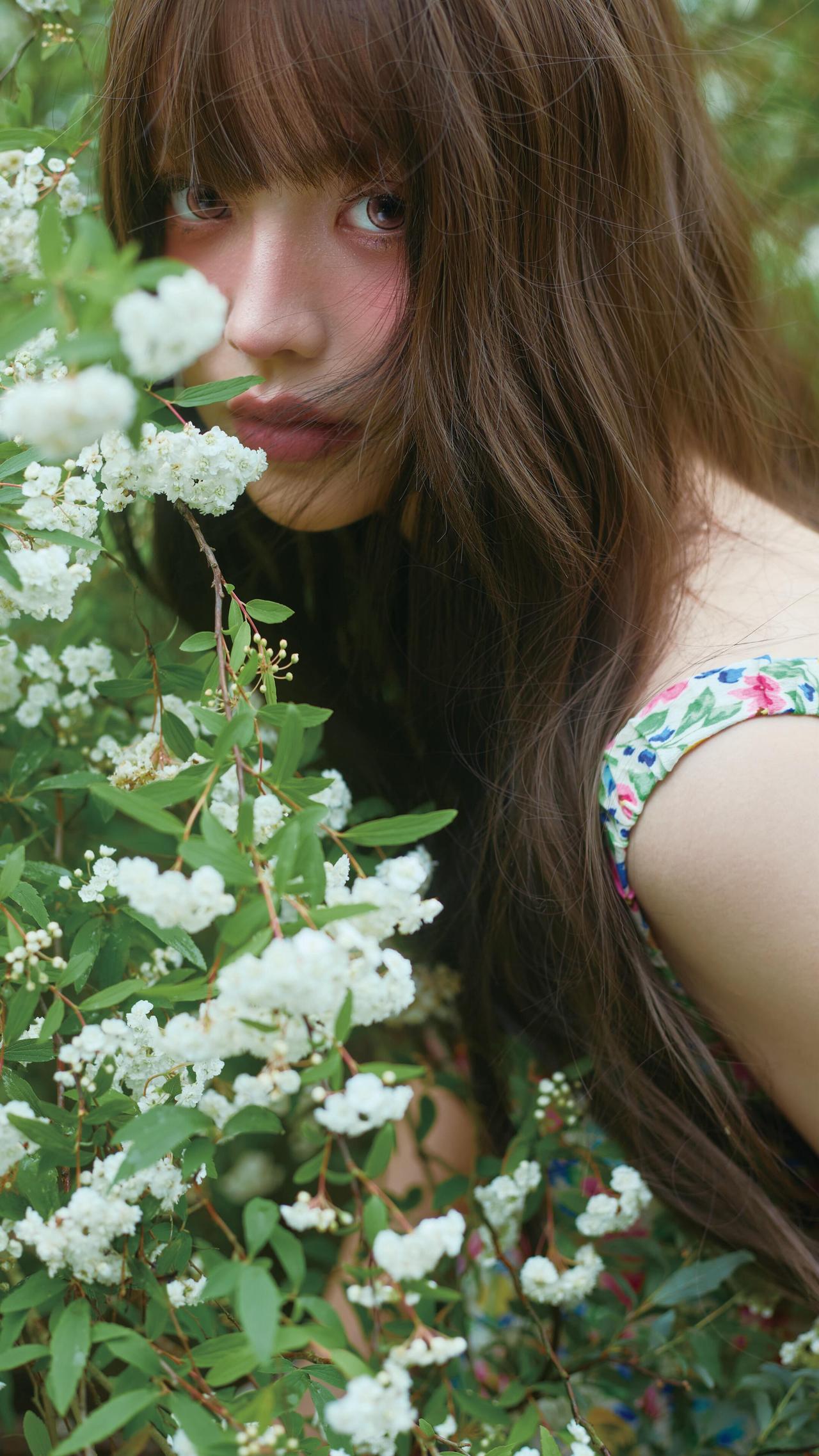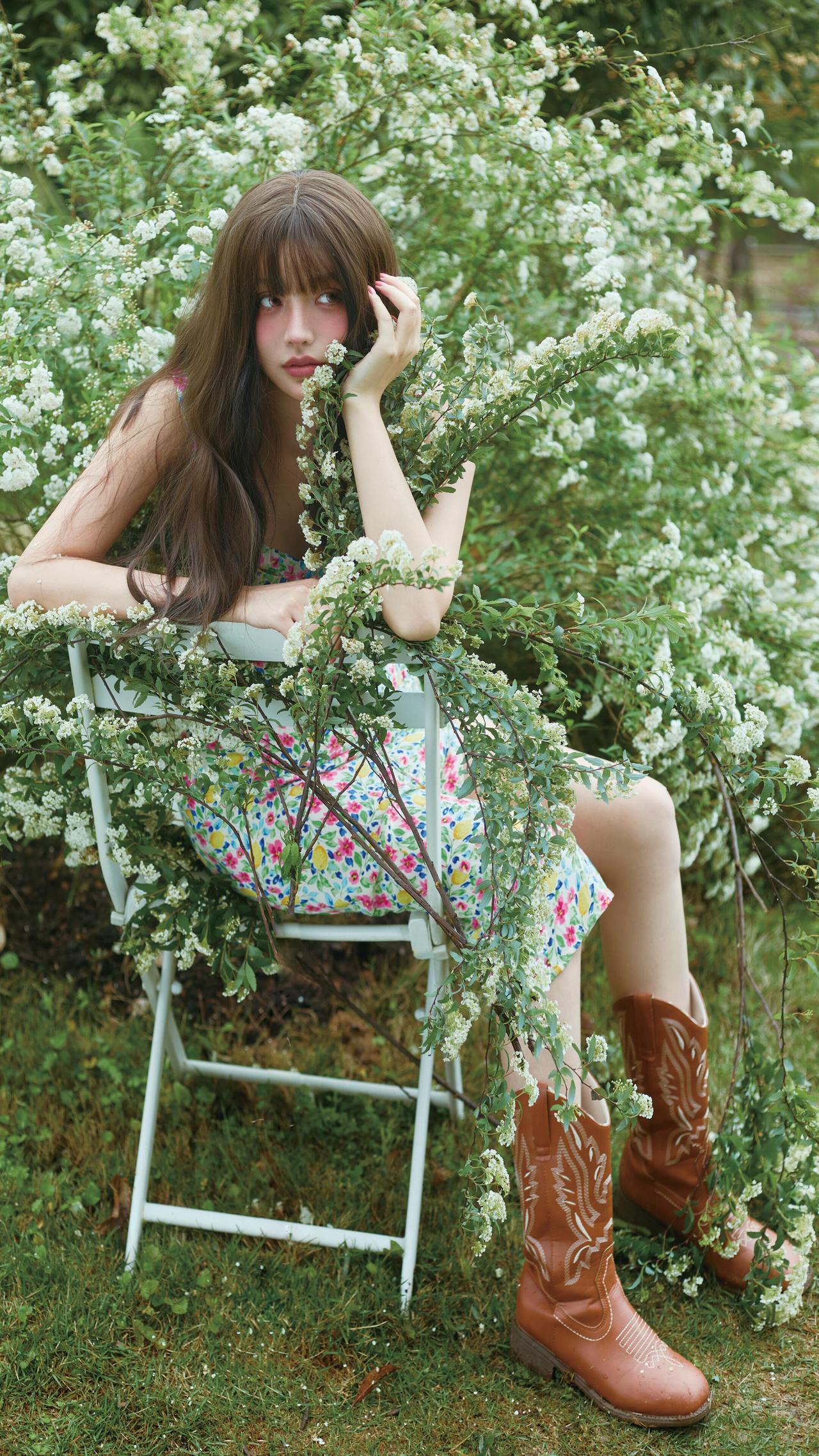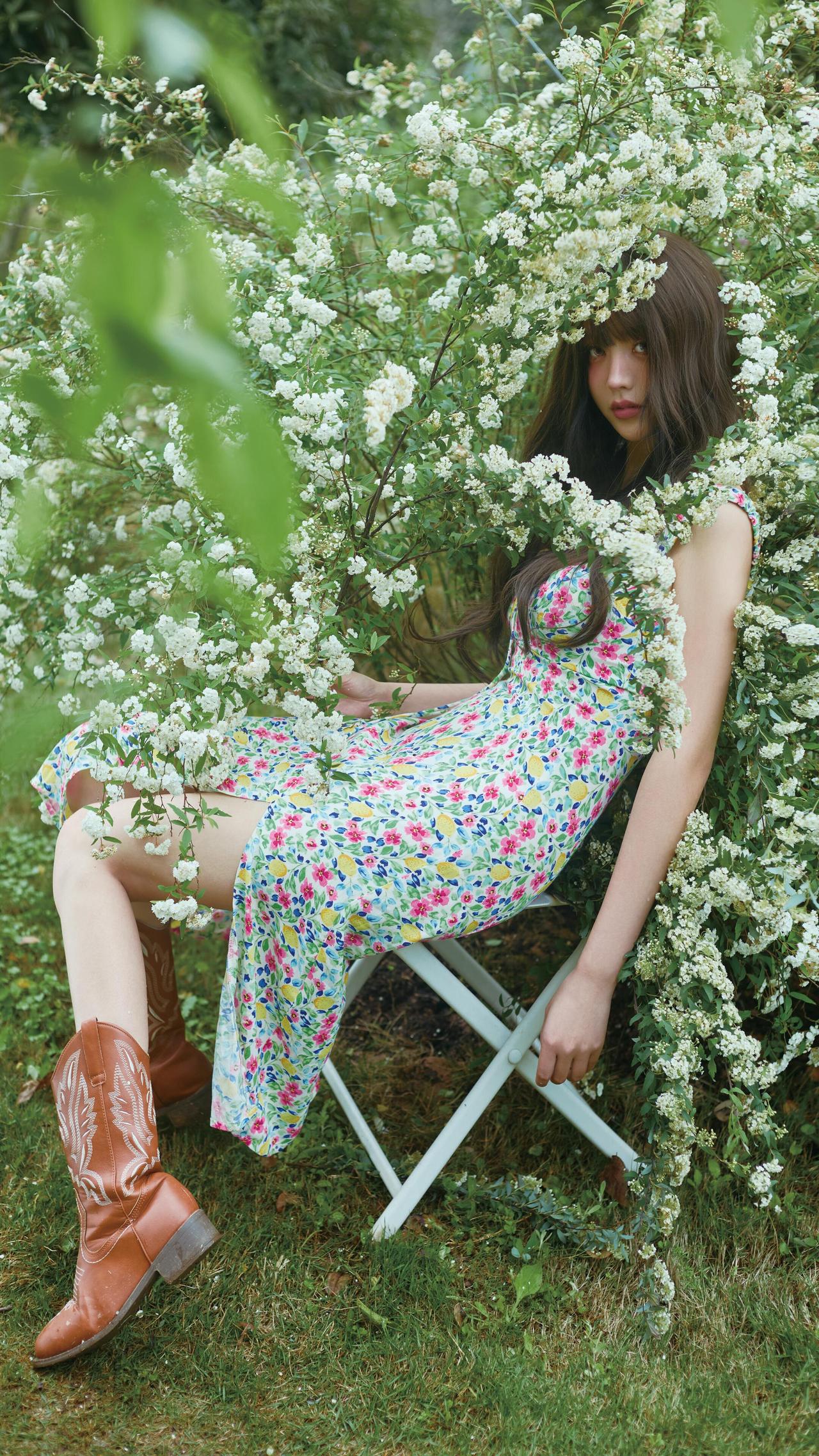 早春人像,让人与自然深度融合,不用刻意的摆拍,仿佛模特本就是春日花境的一部分。 拍摄者深谙环境人像的核心逻辑,没有让人物脱离场景,而是让花簇成为画面的有机组成部分,无论是前景的虚化花影,还是环绕人物的花枝,都在为人物服务,同时强化了“早春芳香”的主题。 色彩搭配堪称教科书级别,白色花簇的纯净、碎花裙的缤纷、牛仔靴的棕红,在绿色背景的衬托下,既丰富又和谐,没有丝毫杂乱感。模特的妆容造型也与主题高度契合,空气刘海、自然卷发、氛围感腮红,完美适配春日花境,没有过度修饰的痕迹,呈现出原生的美感。 构图上,拍摄者灵活运用了多种手法,特写的聚焦、中景的叙事、俯拍的灵动,让整组作品富有变化。尤其是模特倚靠白椅的画面,线条简洁的椅子与繁复的花簇形成对比,既稳定了画面结构,又突出了人物。光影上,利用柔和的自然光塑造出通透的皮肤质感,同时保留了环境的层次,让画面有呼吸感。