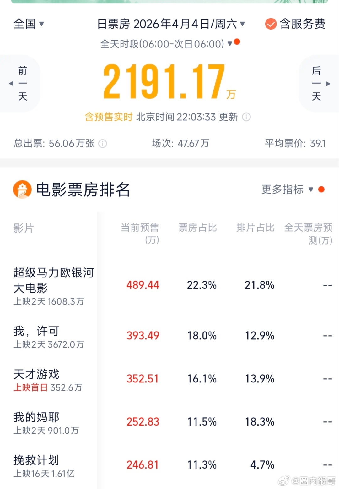 丁禹兮的天才游戏明天开始全国上映,目前首日票房预售350万总预售破500万,积压好几年的冷门题材电影算不错的成绩,看陈伦能不能靠口碑披荆斩棘地闯出来!