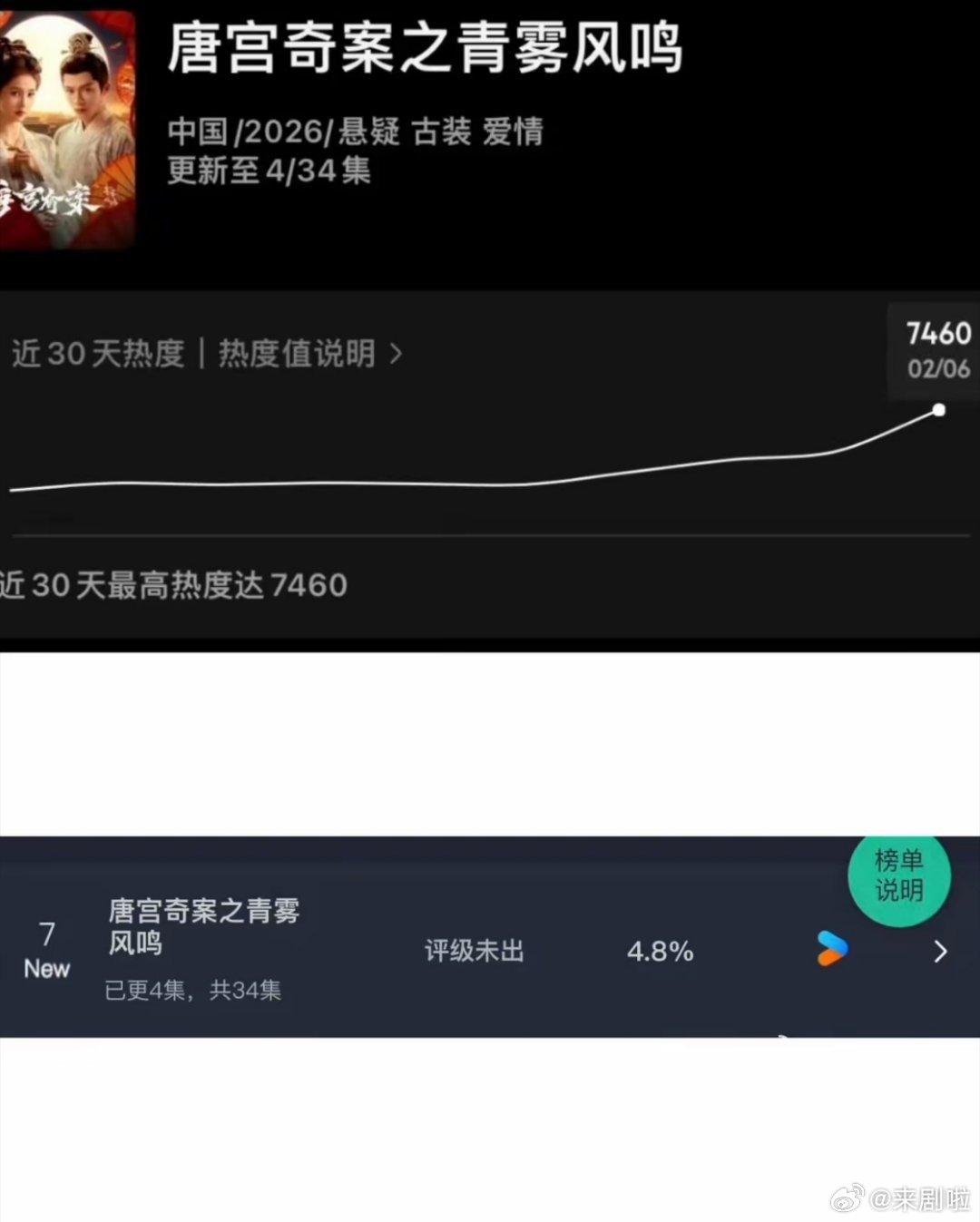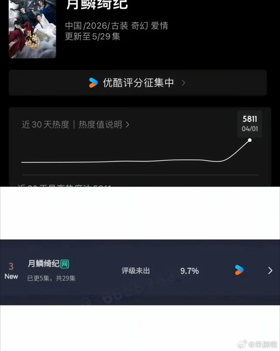 白鹿《唐宫奇案》首日热度7460,云合4.8%鞠婧祎《月鳞绮纪》首日热度5811,云合9.7%这是啥情况,同样是优酷的剧,两部剧也没间隔多长时间啊,云合咋差这么多……