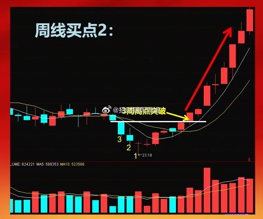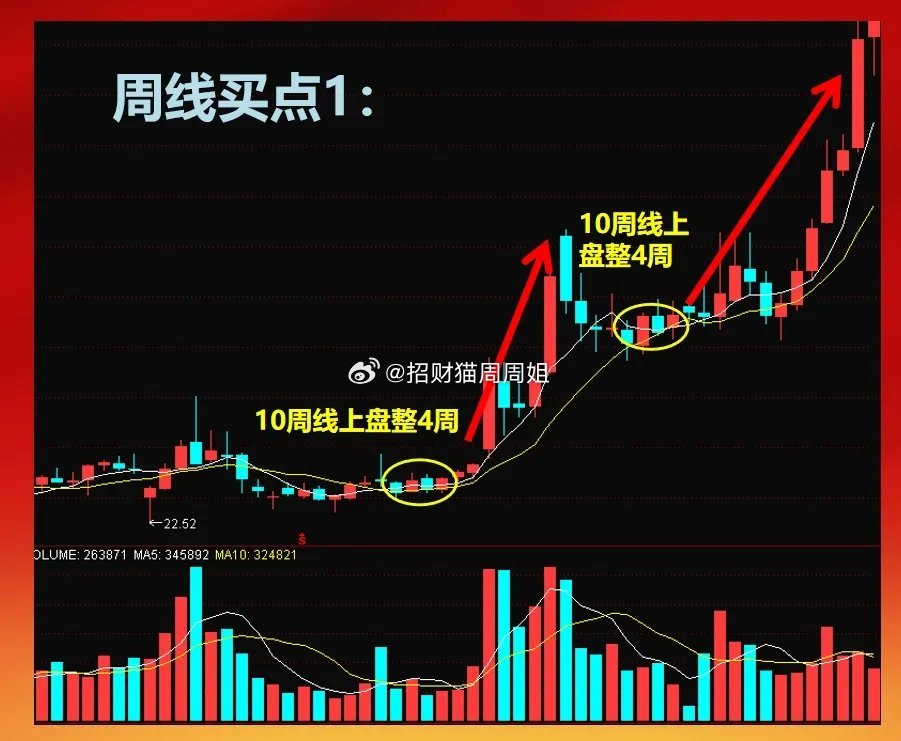 周线买点也是有讲究的,分享其中的3个重要买点,符合条件可轻松驾驭主升行情,甚至有机会走出连板,值得收藏! 1、第一种买点,是比较稳健的,震荡整理要连续4个周K,收线在10周线上,这是主力完成防守阵地,要果断出手。 2、第二种买点,是偏激进的转折点,在下跌低点后,向前数3周,这3周的最高点突破,即可入场。 3、第三种买点,找出周线最大的阴线,当这根阴线被向上突破时,是强势做多的信号。