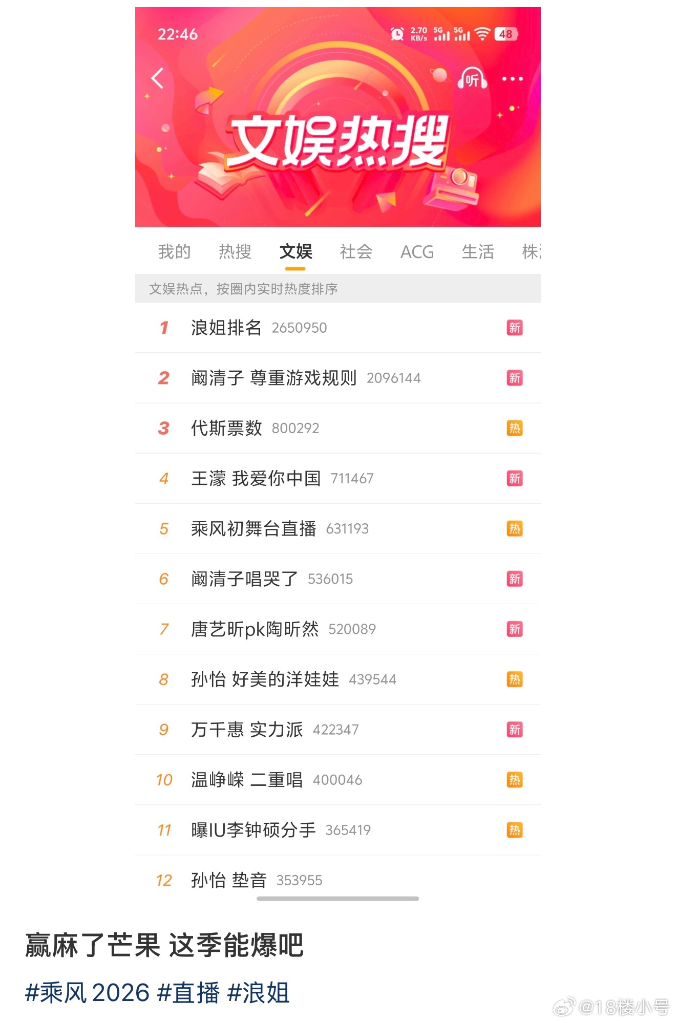 其实浪姐也有单数季定律,越没人看好越容易爆~你看第一天晚上直播热度就很高