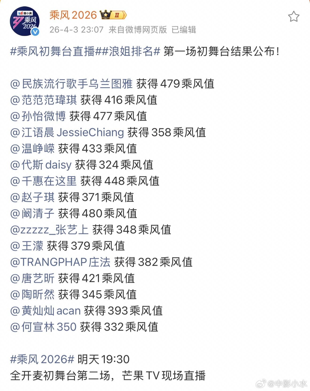 浪姐排名黄灿灿赢了何宣林浪姐改赛制官微公布了黄灿灿是393票浪花+大众投票第一轮:乌兰图雅10+469=479 vs范玮琪40+376=416第二轮:孙怡40+437=477vs江语晨10+348=358第三轮:温峥嵘50+383=433vs代斯0+324=324 第四轮:万千惠40+408=448vs赵子琪10+361=371第五轮:阚清子30+450=480vs张艺上20+328+348第六轮:王濛25+354=379vs庄法25+357=382第七轮:唐艺昕40+381=421vs陶昕然10+335=345第八轮:黄灿灿0+393=393vs何宣林50+282=332