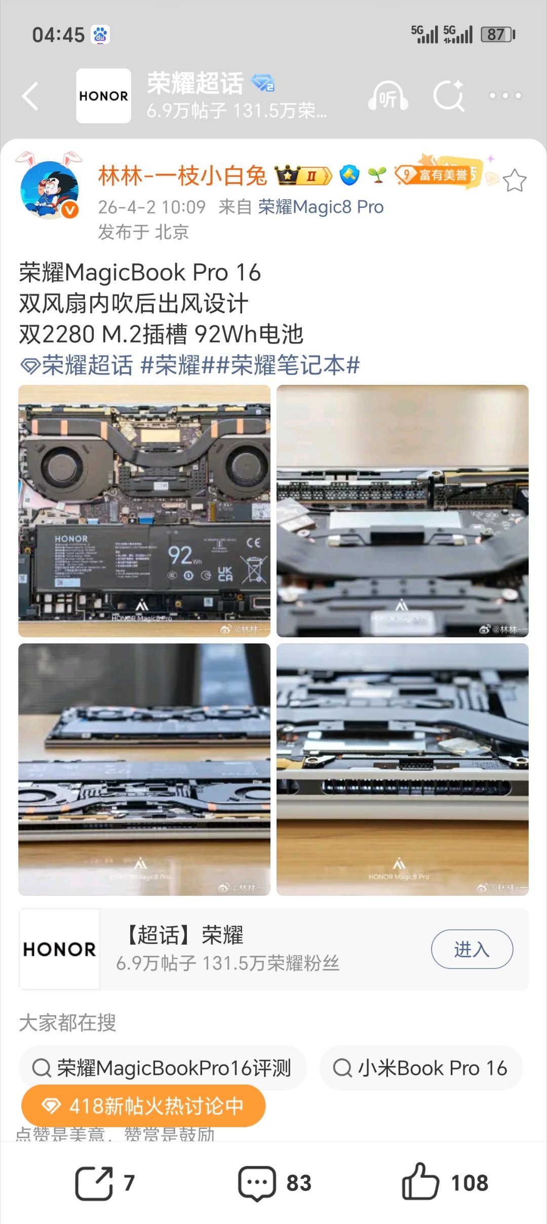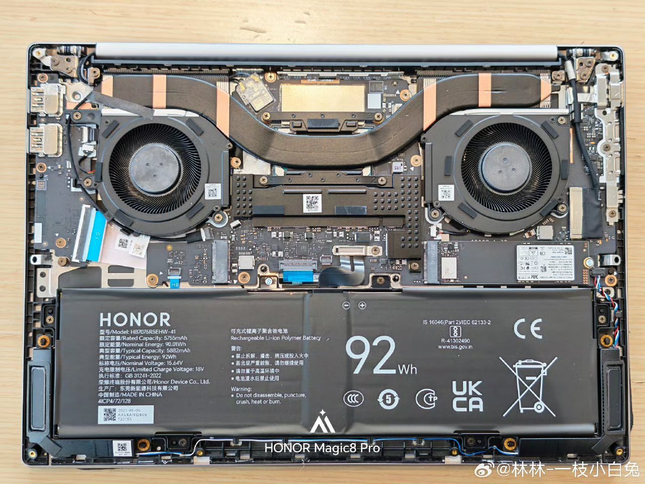荣耀林林在微博晒出 MagicBook 14 笔记本的拆机照片。