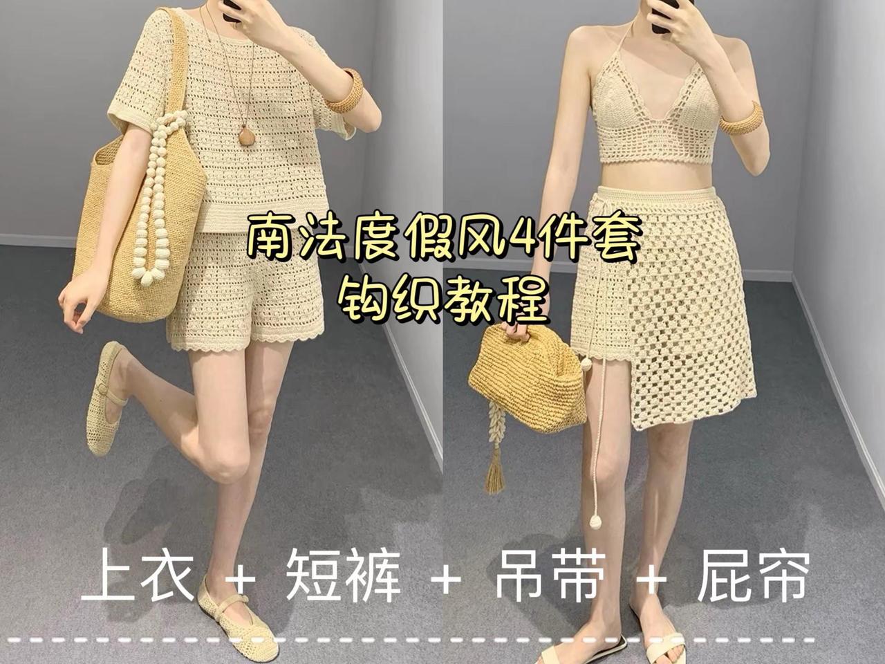 南法之约~~度假风4件套。把普罗旺斯的阳光,织进一针一线里。风穿过针脚的缝隙,带着薰衣草与海盐的气息,针法简单,尺码可以任意调整,从密度计算开始始教学,新手也可轻松学会。钩织教程