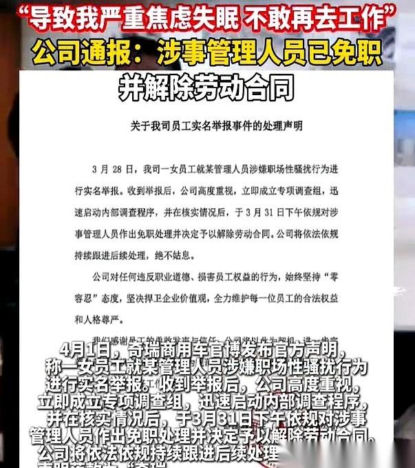 安徽一家车企,男领导江某的手,又一次“不小心”,碰到了00后新员工张女士的肩膀上。 办公室里人来人往,他笑得像个和蔼前辈。张女士攥了攥手里的笔,没吭声。 刚入职,她以为只是工作对接。后来发现,他身体总会往前凑,隔着办公桌,那股烟味都能喷到她脸上。递文件的瞬间,手指会故意划过她的手背。 她开始躲。开会,她专挑离他最远的角落。他端着杯子跟过来,一屁股坐在旁边,腿挨着腿。 张女士默默把椅子挪开半尺。 江某的脸,当场就沉了下去。 第二天,她熬夜做的报表,被他当着整个部门的面,直接甩回桌上。“这点小事都做不好?带脑子了没?” 羞辱和找茬,成了她的日常。 半年,她整个人瘦了一圈,眼底全是黑的。深夜两点,她瞪着天花板,脑子里全是白天他那句骂和那个轻佻的眼神。她开始怀疑自己,是不是真的那么差。 直到那天,她看着镜子里自己毫无生气的脸,忽然想通了什么。 她点开公司的举报邮箱,一个字一个字地敲,手指都在抖,但她没停。把这半年所有的聊天记录截图、被刁难的工作证据,整整齐齐放进附件。 邮件发出去的瞬间,她靠在椅子上,长长地出了一口气,天亮了。 一封实名举报信,捅了马蜂窝。 公司的公告很快贴了出来,白纸黑字:江某,即刻免职,接受调查。 办公室里静得可怕。紧接着,好几个平时不怎么说话的女同事,手机同时亮了,她们都在同一个群里,给张女士发了同样两个字:“谢谢。” 别总觉得新人好欺负,以为手里的那点小权力,就是可以随便越界的通行证。人家不吭声,不是怕,是在攒证据,等着一招把你送走。
