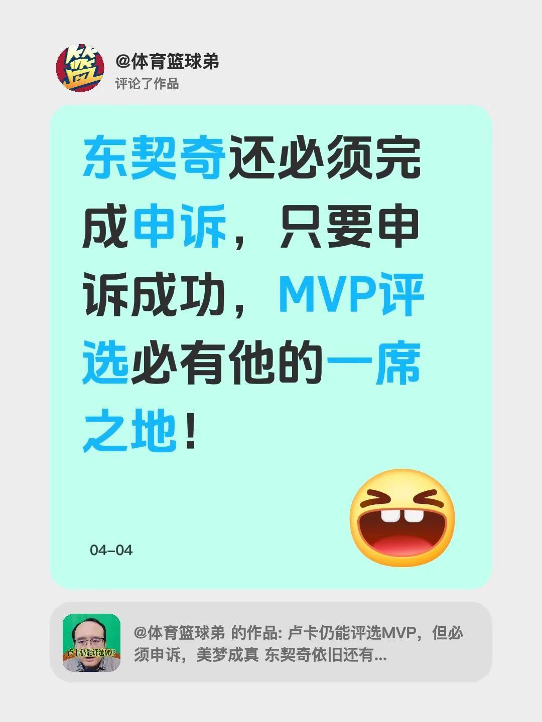 我评论了@体育篮球弟 的作品:东契奇还必须完成申诉,只要申诉成功,MVP评选必有他的一席之地!
