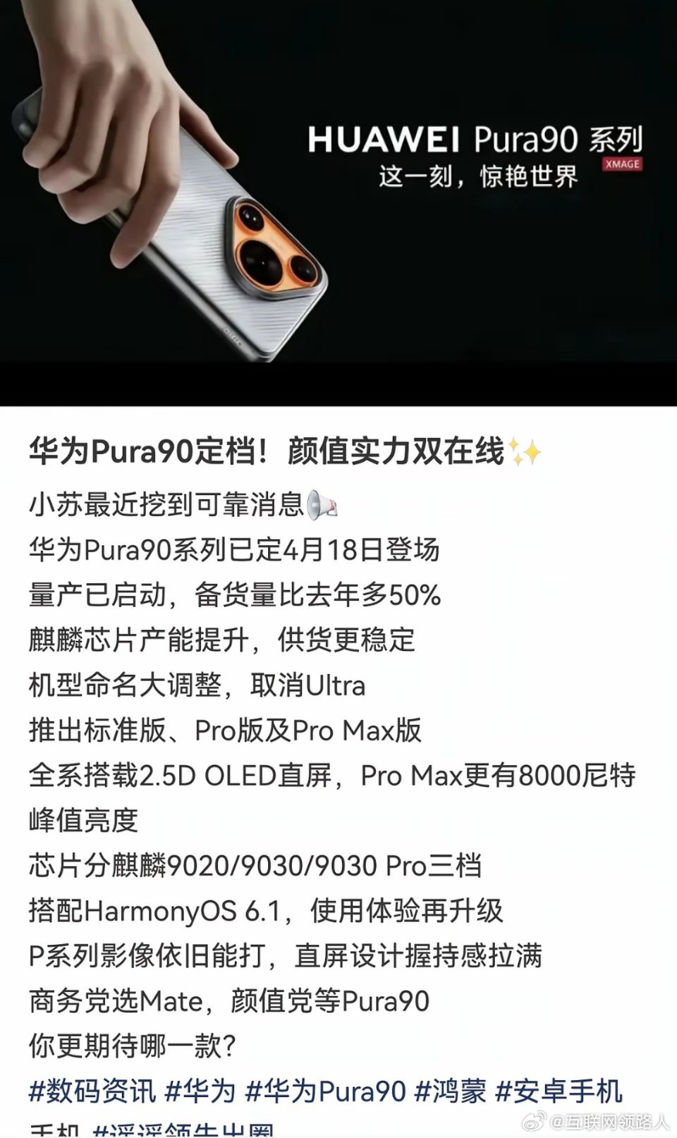 从目前网上爆料信息来看,华为新年旗舰Pura 90系列,第一,取消Ultra命名,改为Pro Max;第二,外观迎来大改,从渲染图来看,融合了Pura 80与iPhone 17 Pro的设计风格。很明显,华为这是要和苹果正面硬刚。