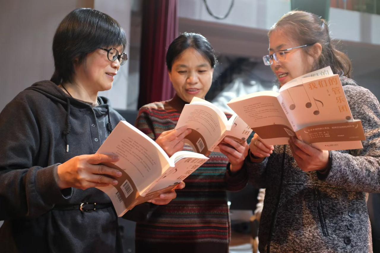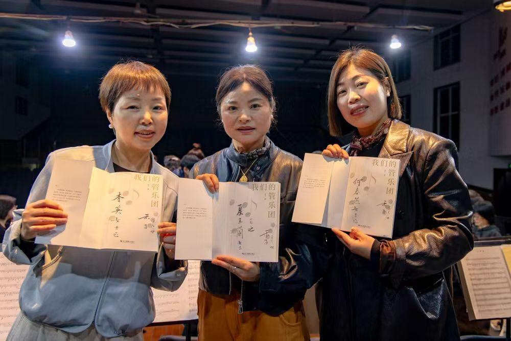 按部就班,累。 找点乐趣,找点爱好才行。 昨晚,临安本土作家禾子(季淼慧)亲临青山管乐团赠书📖 新作《我们的管乐团》,讲述一群洗脚上田的农民奏响乐章的动人故事。生平何🉐荣幸自己还能记录在作家的书本里面,成了季老师笔下的一名主人公,有着我的回忆记录,有良师益友陪同带着脚受伤时抬着我去参加团建活动的照片,真的感动不已!签署仪式上,季老师见面的第一句话就说,你们怎么比三年前更年轻了,[呲牙]对呀!我们精神面貌离不开灵魂人物冯老师的栽培,在团队里面大家都会相互理解。每次出行外面演出,各声部都会负责自己的乐器和谱架凳子,还有邵丽萍后勤保障工作落实的井井有条,我们从不添乱,负责配合也很重要!默默无闻的贡献者还有不少,长号声部的姚伟勤,跟他的名字很搭,拍照做视频基本都包揽,夏天大热天,上课他早上先到,给大家准备好凉茶让大伙喝上。昨晚上长笛声部小娟姐姐就给大伙准备了中场水果让大家分享,零零总总的还有很多很多……你说这么充满爱意的环境里,是不是太幸福太快乐了呀[庆祝][庆祝][庆祝](A i 自己)