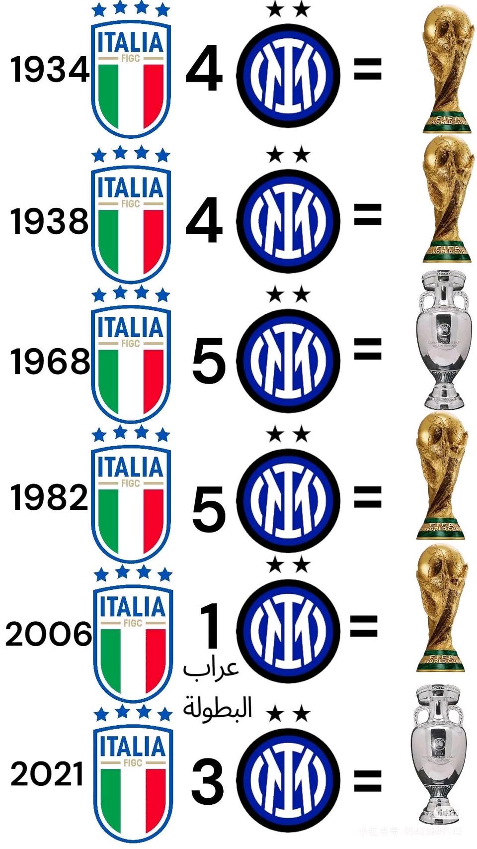 国际米兰球迷晒出为意大利最贡献! 1938年世界杯夺冠,有4名国米球员。 2021年意大利拿欧洲杯,也有3名国米球员。 几乎每次大赛冠军,国际米兰都有人参与。 这次意大利被淘汰,国米球员最多,AC米兰一个没有,那是因为这几年意甲国米踢得好,米兰上赛季意甲第九名造成的。 无缘世界杯,国米不背责!![捂脸]