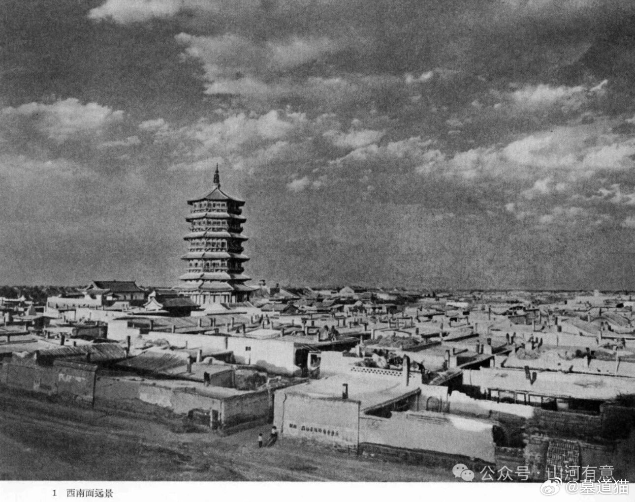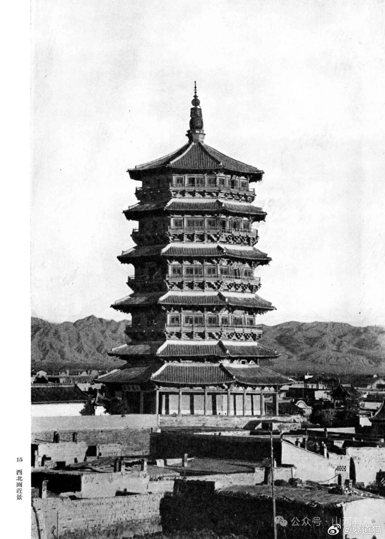 应县木塔老照片,图片来源:陈明达《应县木塔》1966年文物出版社。