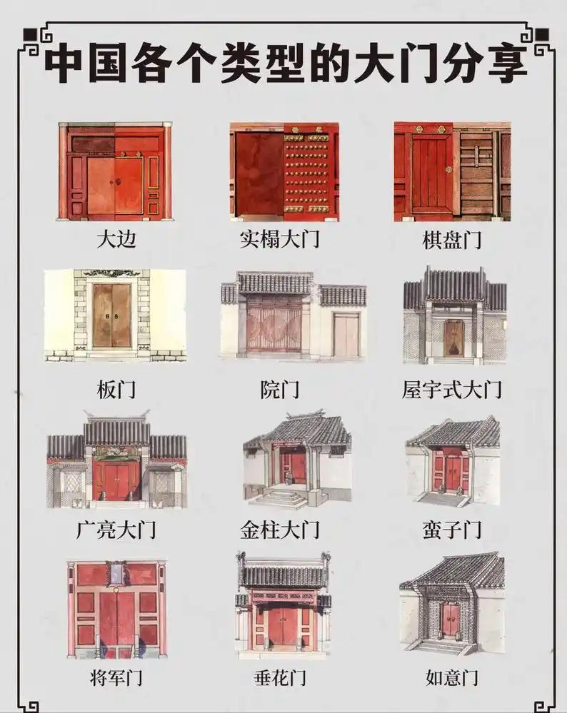 唐代建筑有着森严的等级制度,这种界限不仅体现在整体规模和屋顶形制上,更细微地渗透在门窗的每一处细节中。从门的材质、构造,到窗的棂条、装饰,宫殿与民居的设计完全遵循不同的规制,无需走近,远远望去便能清晰辨别。 唐代宫殿的门,是皇家威仪的直接展现,形制与用料都有最高规格,且严格遵循《营缮令》中关于皇家建筑的专属规范。 大明宫丹凤门作为皇宫正门,是唐代城门的最高等级,设有五个门道,门体由粗壮的柏木、松木拼接而成,外包一层厚重铁皮,铁皮表面经锻打打磨,光滑规整,门上排列着整齐的鎏金门钉,每扇门按规制设3排12枚,象征皇家礼制。 宫殿内的殿堂板门同样规格极高,门扇分上、中、下三段,上段装有密集的直棂便于采光,中段为实心木板增强稳固性,下段镶嵌薄铁皮防潮,门框四周饰有精致的卷草线脚,门砧石与鸡栖木等构件均采用青石打造,表面打磨得光滑如玉,无一丝瑕疵。 重要殿门还会通体涂刷朱红漆色,搭配鎏金铺首与门环,在阳光下熠熠生辉,尽显皇家气派,这种朱门形制,是普通民居绝对禁止使用的,违者将按律处置。 相比之下,唐代民居的门简约质朴,严格遵循等级规范,不得有任何僭越之举。《唐六典》明确规定,六品以下官员及百姓,房门不得使用朱漆、门钉等象征等级的元素。 普通百姓的房门多为实心板门,由3-5块厚松木、槐木拼接而成,采用穿带榫工艺固定,无任何棂格设计,也不施油漆,保留木材本身的纹理与色泽,仅在木板接缝处用小型铁件加固,防止松动。 官员宅邸可按品级使用乌头门,六品以上官员方可选用,这种门两根立柱顶端涂黑,柱身无雕刻,门框简约,仅在门楣处加装简易木枋,无多余装饰,彰显官员身份的同时,又不逾越规制。 无论民居还是官宅,门体都较为窄小,宽度多在1.2-1.5米之间,构件用料均为常见木材,无雕刻、无彩绘,整体风格以实用为主,满足日常进出与防盗需求即可。敦煌莫高窟第320窟壁画中的唐代民居,便清晰呈现了这种简约门型,与宫殿大门形成鲜明反差。 窗户的差异,更是区分宫殿与民居的关键,两者在形制、工艺与功能上有着天壤之别。唐代宫殿窗户以直棂窗为基础,但形制更为精巧,工艺更为复杂。 宫殿直棂窗的棂条采用粗壮的硬木打造,粗细均匀,间距精准,多为10-12厘米,部分高阶殿堂会在直棂基础上,加入龟锦纹、球纹等复杂格心图案,既保证采光,又兼具装饰效果。 窗扇尺寸宽大,单扇宽度可达1.8米以上,窗框外常设砂石打造的压窗石,防止窗扇变形,部分窗户还会采用双层棂条设计,内外棂条可交错开合,既能调节光线明暗,又能控制通风量。 唐代民居的窗户则极为朴素,以单层直棂窗为主流,无任何复杂工艺。棂条采用细长的软木打造,粗细不均,间距较密,多为6-8厘米,且严格采用奇数排列,取奇数为阳的民俗理念,样式单一,无任何花纹装饰。 门窗的装饰规范,进一步拉开了宫殿与民居的差距,这种规范被明确写入《营缮令》与《唐会要》,有着严格的执行标准。 只有皇家宫殿可使用重拱、藻井与朱红彩绘门窗,宫殿门窗的斗拱、梁枋处,会施朱红、青绿等色彩绘制卷草纹、云气纹等简单纹样,构件连接处的金属件多为鎏金或铜制,包括铺首、门环、棂条固定件等,细节处尽显华贵。 而民居门窗严禁任何装饰,不得使用彩画、悬鱼、瓦兽等元素,即便富商大贾,也不能越制添加装饰,违者将被杖责五十,并责令拆改违规部分。 此外,唐代还规定“公私第宅不得造楼阁临视人家”,民居门窗不得设计过于高大,进一步限制了民居的装饰与规格,让民居门窗始终保持简约本色,与宫殿的华丽形成强烈反差。 从门的规格、窗的形制到装饰的有无,唐代宫殿与民居的门窗差异,是等级制度在建筑上的直观体现。这些差异并非简单的审美选择,而是融合了礼制、功能与工艺的规范,每一处设计都有明确的制度依据。 透过这些门窗细节,既能看到唐代建筑的工艺水准,更能读懂封建社会严格的等级秩序,也让传统建筑的规制文化,有了更具体、更鲜活的载体。
