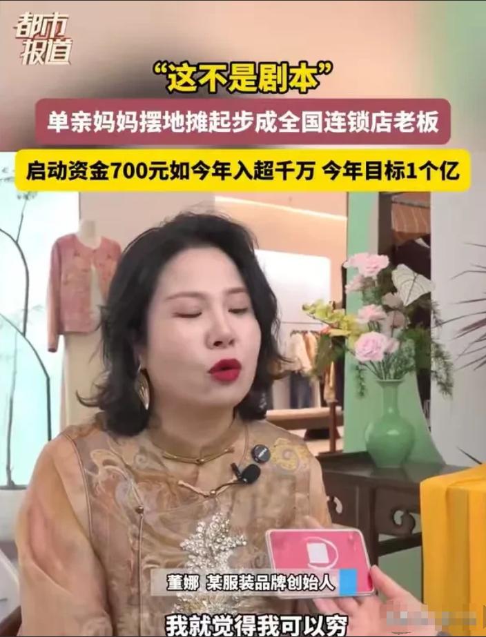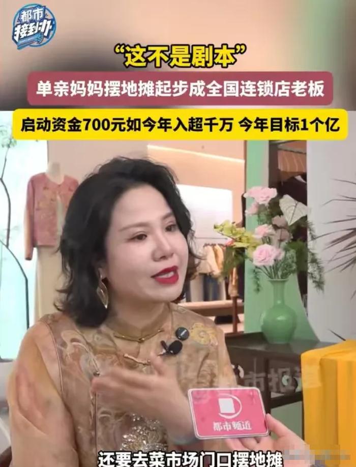 “这不是剧本!”河南郑州,女子离了婚,带着孩子,揣着700元,就开始了摆摊之路,从700元到几千万的收入,她做到了,其中的心酸,只有她一个人知道,她只说了一句话:“我可以吃苦,我可以穷,但我的孩子不可以!”就这么一句话,她创造了奇迹。 这件事要从2012年说起,当时董娜刚离婚,身边带着年幼的孩子,身上就只剩700块钱。 那时候的她,没工作、没靠山,带着孩子根本找不到体面的工作,毕竟没人愿意招一个要随时照顾孩子的单亲妈妈。 老话常说,女子本弱,为母则刚,这句话放在董娜身上,再合适不过。 想想看,700块钱,放在现在,可能连给孩子买两身像样的衣服都不够,更别说要养活两个人、撑起一个家了,这样的绝境,换做是谁,恐怕都要慌神,可董娜却硬是咬着牙扛了下来,谁能想到,这区区700元,能让一个单亲妈妈,硬生生闯出一片千万身家的天地呢? 走投无路之下,董娜选择了摆摊,这是她唯一能一边照顾孩子、一边赚钱的路。她拿着仅有的700元进了一批货,从此开启了起早摸黑的摆摊生活。 天不亮就出摊,天黑透了才收摊,有时候孩子困了,就趴在摊位旁边的小凳子上睡觉,她一边照看生意,一边盯着孩子,不敢有半点马虎。 好在那时候摆摊门槛低,只要肯吃苦、肯受累,生意就不算差,起码能让她们娘俩不至于吃了上顿没下顿。 摆摊久了,董娜也慢慢摸出了点生意门道,她知道,只靠摆摊终究不是长久之计,想要挣更多钱,给孩子更好的生活,就得开店。 于是她攒了一段时间的钱,开了一间20多平方米的服装小店,本以为能有个遮风挡雨的地方,没想到反而更拼了。 每天一大早就得去进货,回来后烫衣服、挂衣服、招呼顾客,忙得脚不沾地,等到晚上小店关门,她还不能休息,还要拿着衣服去外面摆摊,一摆就到深夜。 这样的日子,她坚持了很久,每天只睡三四个小时,累到偷偷哭是常有的事,可她从来不敢在孩子面前掉一滴眼泪。 她心里暗暗发誓,自己吃再多苦、受再多累都无所谓,绝不能让孩子再走自己的老路,绝不能让孩子跟着自己吃苦。 凭着这股韧劲,董娜慢慢积累了经验和资本,也练就了敏锐的市场眼光。 后来,她发现新中式服饰越来越流行,不像以前那样只适合拍照,而是能融入日常通勤,越来越多人喜欢这种既有传统韵味又时尚的款式,她果断抓住这个机会,创立了自己的新中式潮流服饰品牌。 她做的衣服,质量好、款式新,刚好契合了当时的流行趋势,生意一下子就火了起来,越做越大。 到了2025年,她的收入已经达到了几千万,这是她当初揣着700元摆摊时,想都不敢想的数字。 如今的她,不仅不用再吃苦受累,还能给孩子最好的生活,她笑着说,今年还有一个小目标,就是努力实现年收入1亿,这份底气,都是她日复一日拼出来的。 其实董娜的成功,从来都不是偶然,也没有什么捷径可走,支撑她走下来的,不过是一个母亲对孩子的爱与责任。 都说母爱是世界上最伟大的力量,董娜就用自己的经历,完美诠释了这句话。 她就像一株不起眼的野草,在风雨中顽强生长,把所有的委屈和疲惫,都变成了保护孩子的铠甲;她又像一束光,哪怕身处绝境,也从未放弃希望,用自己的双手,把700元的窘迫,活成了几千万的光芒。 说到底,董娜只是一个普通的母亲,她最初的愿望,不过是想让孩子能吃饱穿暖、不受委屈,可就是这份最简单的心愿,让她爆发出了无穷的力量。 生活从来不会辜负拼命努力的人,尤其是那些为了爱的人拼尽全力的人。 董娜的故事告诉我们,困境并不可怕,可怕的是失去面对困境的勇气,只要心中有牵挂、有信念,哪怕从尘埃里出发,也能开出最美的花。 大家对此怎么看?欢迎评论区留下您的观点!