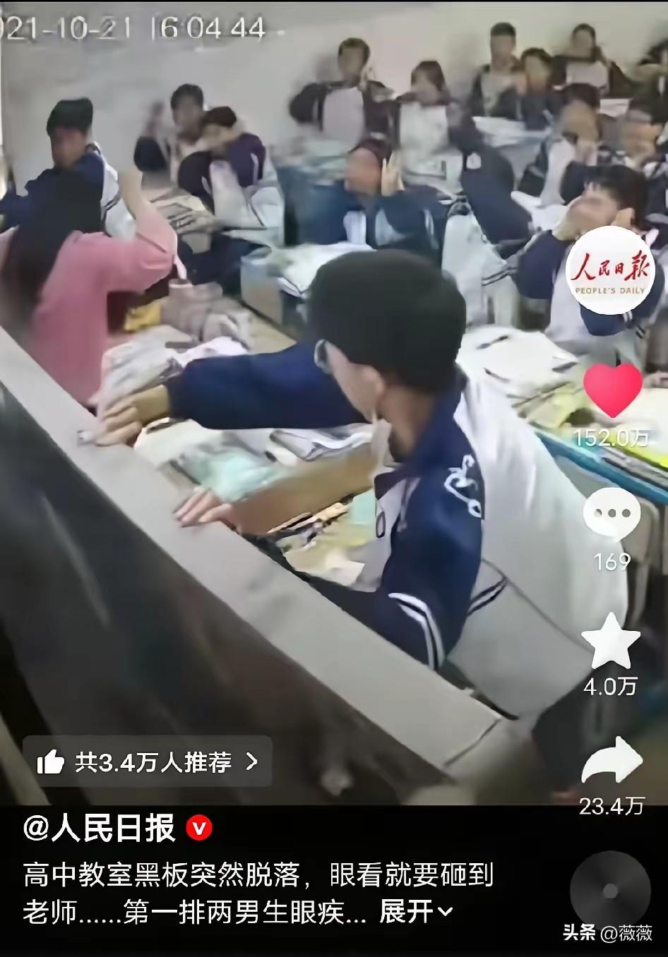 看得人热泪盈眶!一块80多斤的黑板突然从天而降,直直砸向怀有身孕的女老师,就在所有人都以为悲剧无法避免时,讲台前两名少年几乎同时弹射起身,用身体硬生生托住了整块下坠的黑板。没有犹豫、没有商量、没有退缩,0.3秒同步发力,3秒生死瞬间,他们用最本能的一撑,救下了老师! 你发现没有,这世上最动人的瞬间,往往来不及思考。 一块80多斤的黑板,突然从天而降,直直砸向怀有身孕的女老师。所有人都吓傻了,以为悲剧无法避免。可就在那0.3秒,讲台前两名少年几乎同时弹射起身,用身体硬生生托住了整块下坠的黑板。没有犹豫,没有商量,没有退缩。三秒生死瞬间,他们用最本能的一撑,救下了老师,也救下了两条命。 看完这个视频,我头皮发麻,眼眶发热。那两个少年,可能平时调皮捣蛋,可能成绩不是最好,可在那一刻,他们就是英雄。不是电影里的超级英雄,是现实中、教室里的少年英雄。他们没有超能力,只有一颗来不及想“该不该”的心。那颗心,叫善良,叫勇敢,叫本能。 有人说,这是教育的成功。可我觉得,这跟教育关系不大。这是人性里最底层的亮光。你教不教,它都在;你考不考,它都会冒出来。那两个少年,在黑板砸下来的瞬间,脑子里没有“会不会受伤”,只有“老师危险”。他们用身体去挡,就像父母挡在孩子前面一样自然。这种本能,比任何奖状都珍贵。 更让人动容的是,他们几乎同步发力,没有商量,却像排练过一样。这就是默契,是人心向善的默契。你冲,我也冲;你撑,我也撑。他们撑住的不是一块黑板,是一个家庭的完整,是一个未出生孩子的未来。那位老师,这辈子都不会忘记这两个学生。 我们总说,现在的孩子娇气、自私、不懂事。可你看,关键时刻,他们比谁都靠得住。平时嘻嘻哈哈,真出了事,第一个冲上去的就是他们。别小看任何一个少年,他们心里都藏着光。平时不亮,是没到需要亮的时候。 那两个少年,没有豪言壮语,没有事后邀功。他们只是做了该做的事。可正是这份“该做”,让所有人看到了希望。这世上,还是好人多;这世上,少年的心,最热。 谢谢你,两位少年。你们托住的不只是黑板,是我们对下一代、对人性的信心。这份本能,比任何成绩都耀眼。愿你们一生平安,愿那位老师和孩子也平安。这个世界,有你们,真好。
