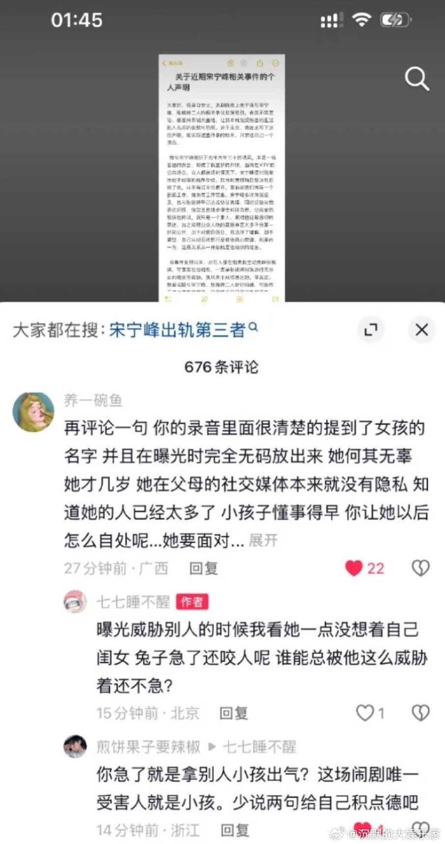 Q女士发文回应与宋宁峰、张婉婷的争议:她与宋宁峰在大年三十的酒局相识,宋宁峰当场对她动手动脚被拒,后以“已和张婉婷协.议离婚、会负责”为由追求,骗她陷入关系。