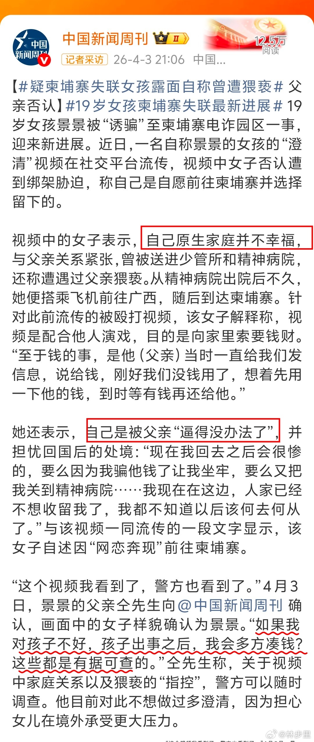 媒体对没有脱离控制,没有证实的话,就这样发表出来,好吗?还反转?19岁少女柬埔寨失联事件迎反转