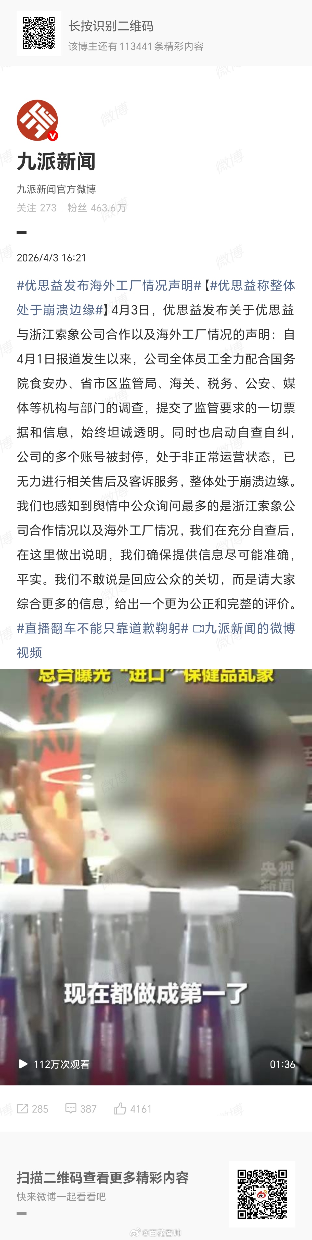 优思益发布海外工厂情况声明优思益这则声明,堪称“崩溃式公关”的教科书级表演。一边声称“全面配合调查”,一边高喊“账号被封、无力售后”——把自己塑造成受害者,而非问题责任方。公众追问的是产品安全、合作真相,你却用“崩溃边缘”博同情?这种“我惨我有理”的姿态,暴露的恰恰是危机应对的失能与真诚的缺席。更讽刺的是,声明末尾那句“不敢说是回应公众关切”——既想撇清责任,又想引导舆论,唯独不敢直面核心质疑。直播翻车不可怕,可怕的是翻车后还在演“崩溃”的戏码。消费者要的不是卖惨,是真相与担当。