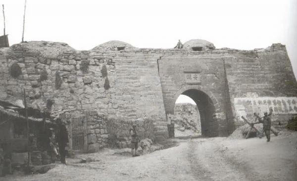 1947年3月,胡宗南率国民党军占领延安后,拍摄的延安老城正南门安澜门。 安澜门是明清延安府城的正南门,取“安澜绥靖、安定一方”之意,是延安城南的门户,也是进出延安的核心交通要道。城门为石砌拱型门洞,门额嵌有刻着“安澜”二字的石匾,厚重的毛石城墙是明清延安城防的核心遗存。 城墙上加筑的两座圆顶石砌机枪碉堡、预留的射击孔,搭配城门右侧设置的木拒马,是1947年国军占领延安后,为防范彭德怀西北野战军反攻、加固城防的核心设施,哪怕占了延安,也全程活在解放军的威慑里!
