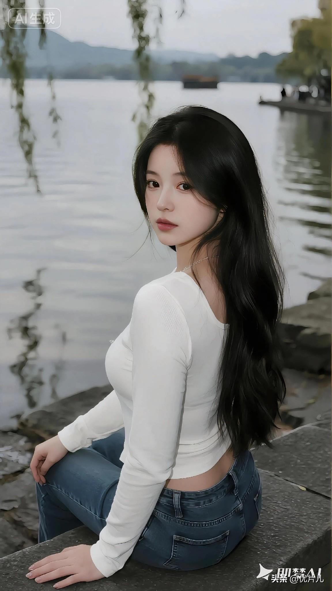 静坐岸边,看水波荡漾,听柳丝轻摇, 把所有的疲惫,都融进这山水之间吧。 治愈系 牛仔裤穿搭