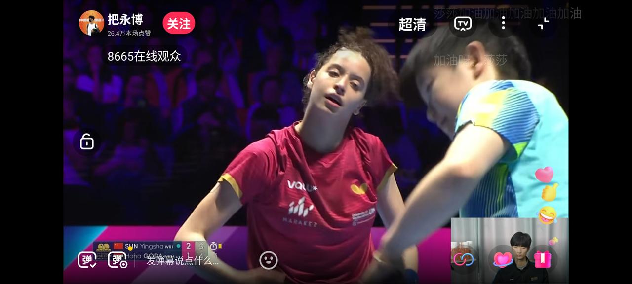 莎莎肯定身体不适,局间都是用保温杯喝热水,晚上王楚欣和曼玉打球场次,所有的运动员都去了,莎莎都没去,可能在休息了。