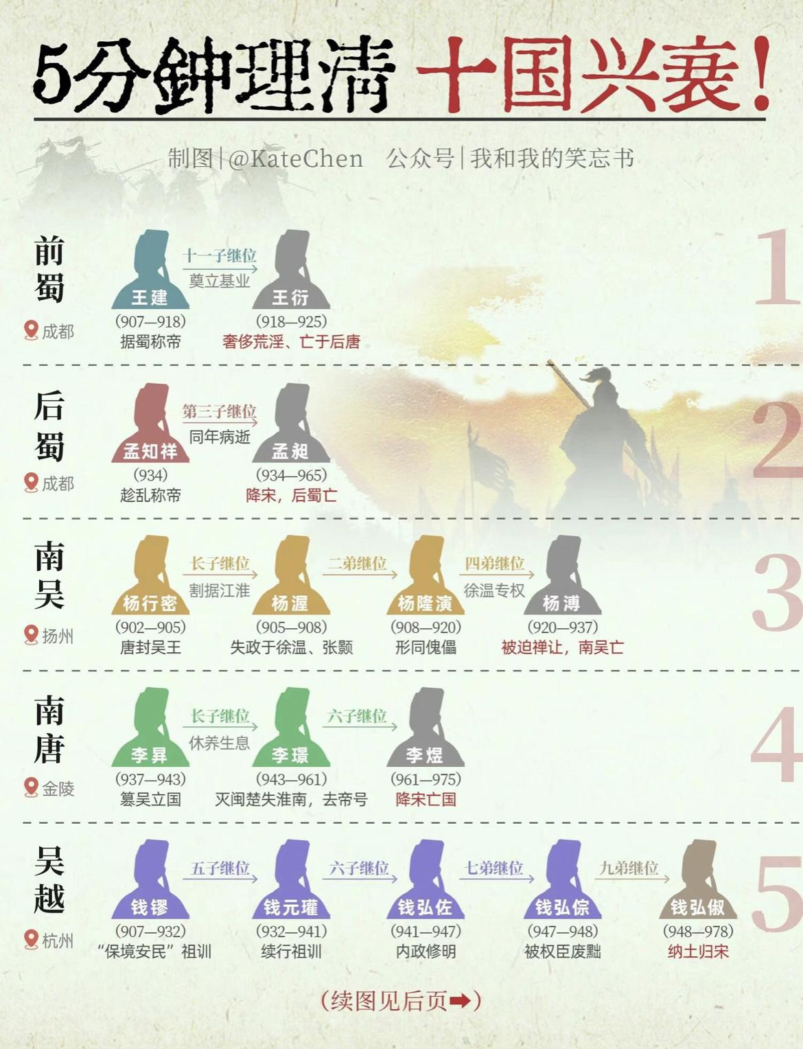 五分钟理清五代十国中的十国兴衰。 该说不说,五代十国乱世真是混乱啊,小国林立,改朝换代频繁[允悲] 五代十国