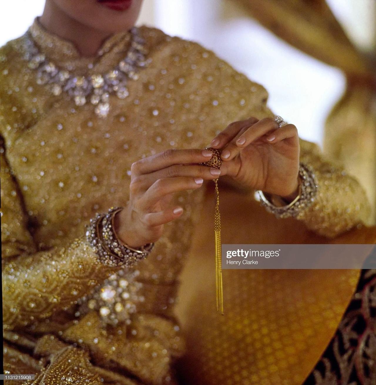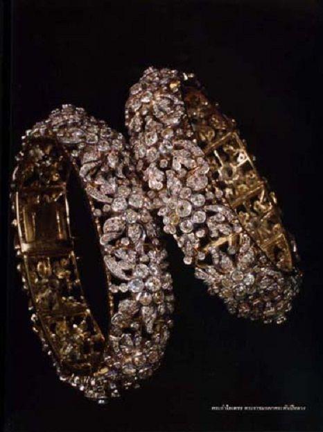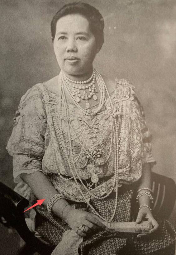 泰国王室的雕花钻石手镯,一套八只,是他泰祖上老货了,能找到五世王后的佩戴照,可能有上百年的历史了,算泰国王室手部饰物里面最有特色的一套 当然这些镯子最主要的佩戴者是九世王后诗丽吉,在五六十年代高频使用。她还特别喜欢叠戴,甚至试过八只全部整上(能练麒麟臂)。七十年代开始逐渐不怎么见到了,压到2023年由十世王后苏提达各戴一只出席英王查三加冕礼(左右各一点缀) 已知苏提达和十世将在月底参加瑞典国王寿宴,没准也会戴上