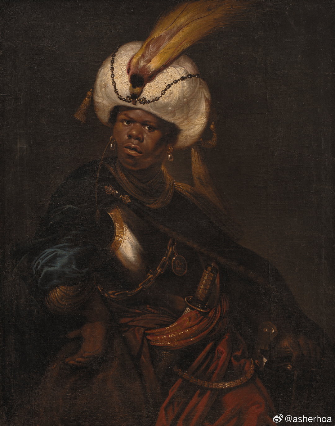 西洋历史文化鱼缸 历史人物 荷兰黄金时代的画家卡雷尔·范·曼德(1609-1670)的作品《戴头巾披甲的男子》。