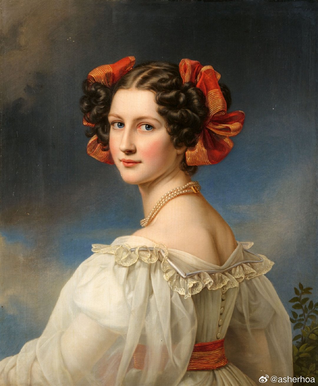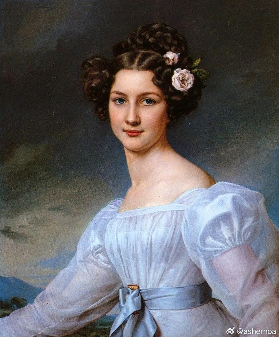 西洋历史文化鱼缸 历史人物 德意志画家Joseph Karl Stieler (1781–1858)1827年为奥古斯特·斯特罗布尔绘制的肖像。奥古斯特·斯特罗布尔(Auguste Strobl,1807-1871)1826年被巴伐利亚国王路德维希一世誉为王国第一美人,名噪一时,国王委托宫廷画师Joseph Karl Stieler为她作画,第一个版本(图1)令国王十分不满,因为画家过分突出了奥古斯特的脖子,于是画家不得不重新绘制了第二个版本,终于获得国王认可,悬挂于王家“美人画廊”内。奥古斯特·斯特罗布尔后来嫁给了一位护林员,生育了五个孩子,国王是其中一个孩子的教父。不知怎的,看到此画突然想到了星球大战里的利亚公主。