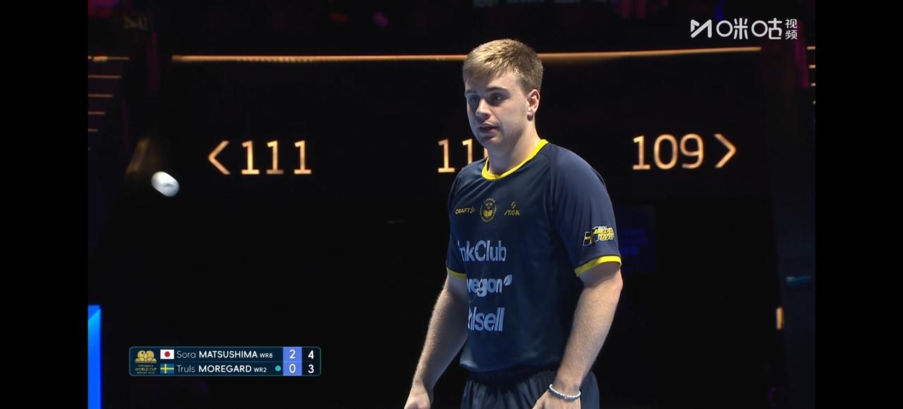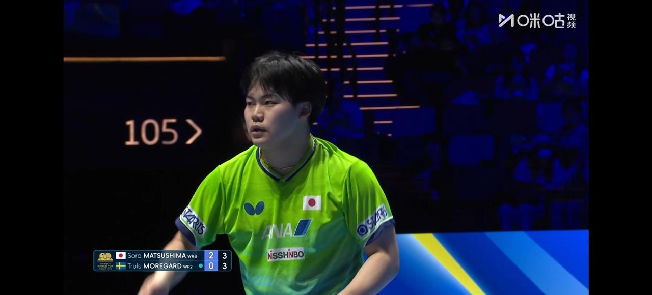 刚刚结束了一场国际乒联澳门单打世界杯男单1/4决赛,世界排名第8的日本18岁小将松岛辉空,状态火热,连下4局,4-0完胜世界排名第2的瑞典名将莫雷加德,晋级男单四强。 比分11-7,11-7,11-8,11-1。 松岛辉空最近2年进步很快,未来成为国乒男单主要对手。 松岛辉空下一轮对阵中国台北选手林昀儒,后者4-1淘汰张本智和。